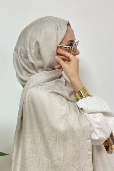 Oliva Pamuklu Kendinden Dokulu Etnik Desen Şal- Bej