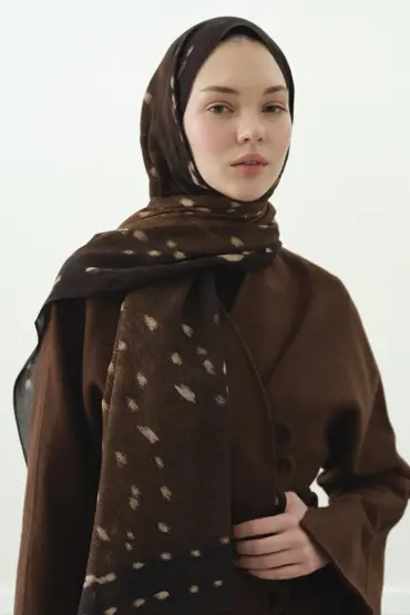 Oliva Pamuklu Kendinden Dokulu Etnik Desen Şal- Füme