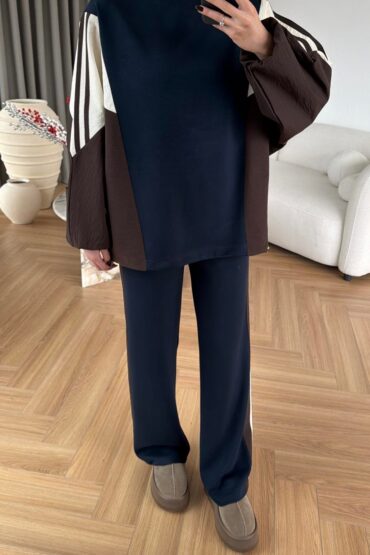 Massimo Kapüşonlu Garnili Takım – Lacivert-gri