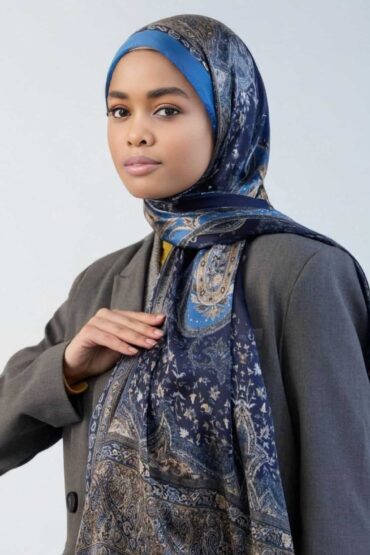 İndigo Sahara Desen Pamuk İpek Şal