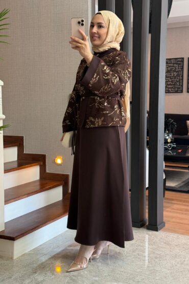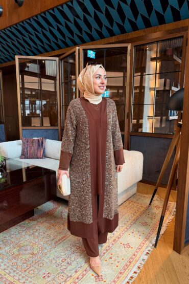 Payetli Üçlü Takım – Kahve