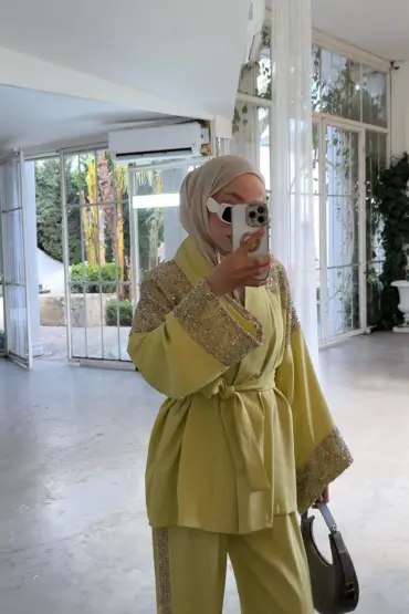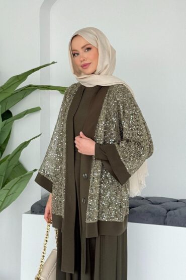 Payetli Üçlü Takım – Haki