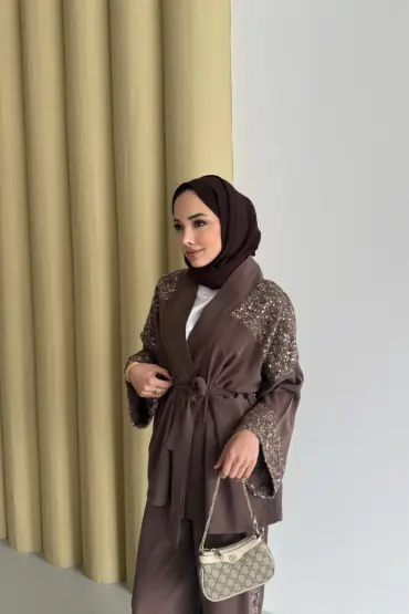 Payetli Kimona Takım – Kahverengi