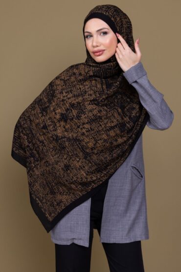 Kahve Eyyübi Desenli Pamuk İpek Şal