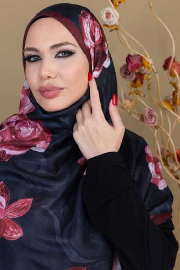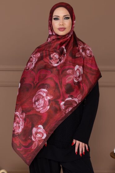 Kızıl Kahve Çiçek Desen Pamuk Soft Şal