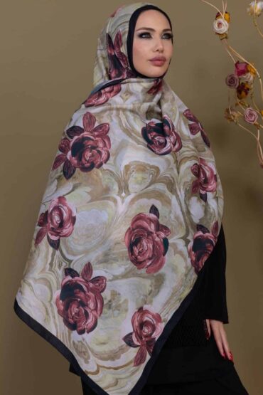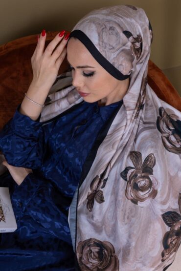 Kahve Çiçek Desen Pamuk Soft Şal