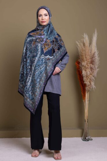 Lacivert Nomad Mirası Yün İpek Şal