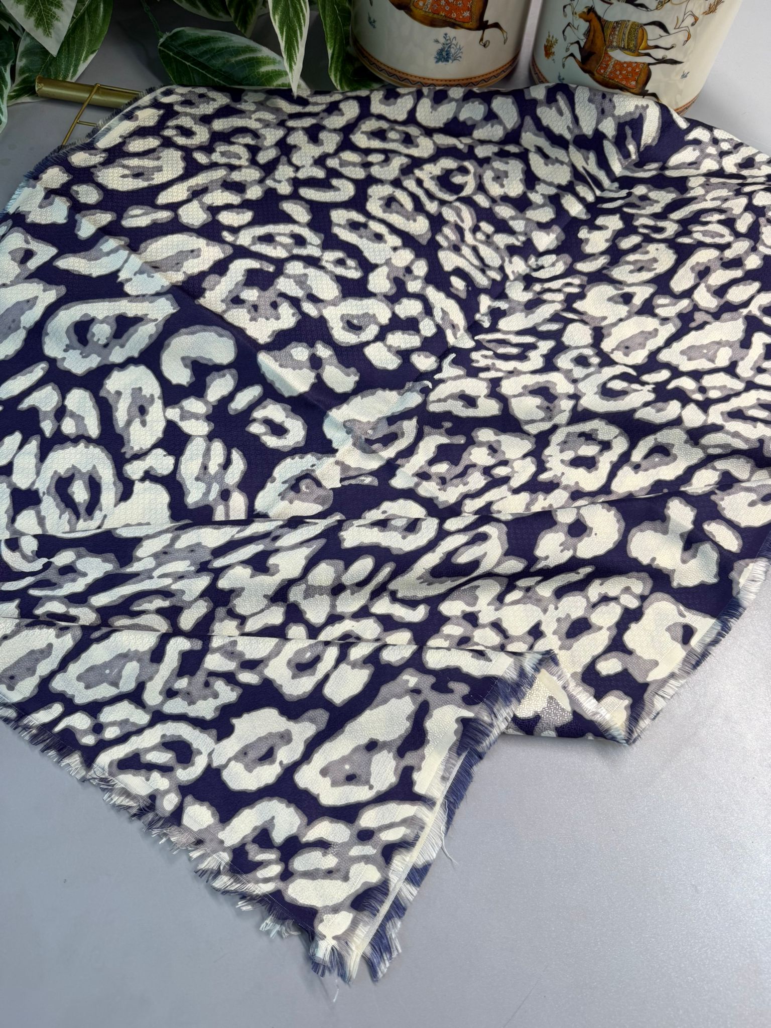 Ala Leopar Desen Naturel Pamuk Şal-LacivertAla Leopar Desen Naturel Pamuk Şal-Lacivert