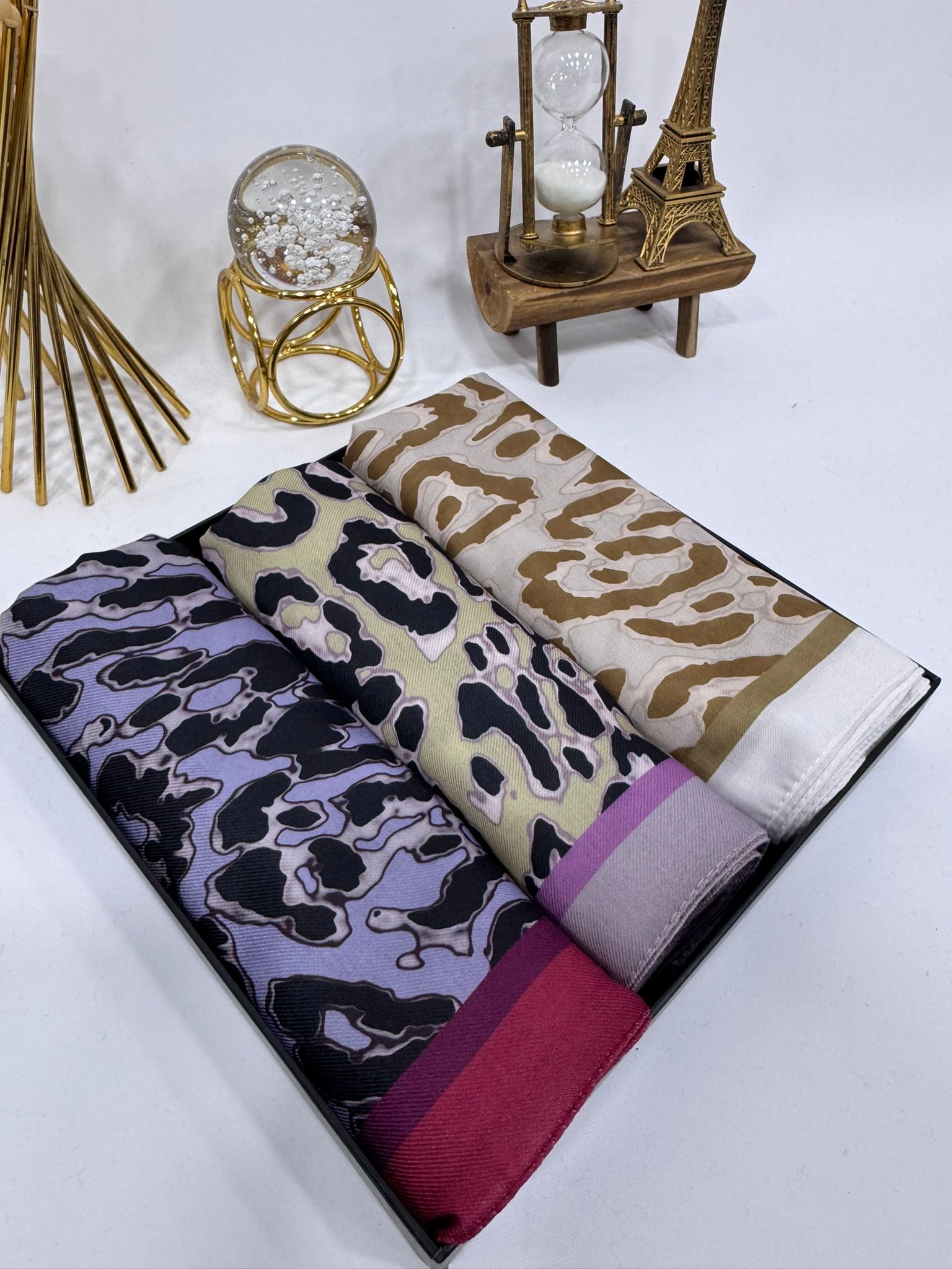 Günlük şıklığınızı tamamlayan 3’lü şal seti, sade tasarımı ve uyumlu renk geçişleriyle her stile kolayca adapte olur. İnce ve akıcı dokusu sayesinde başta zarif bir duruş sergilerken, gün boyu rahat bir kullanım sunar.