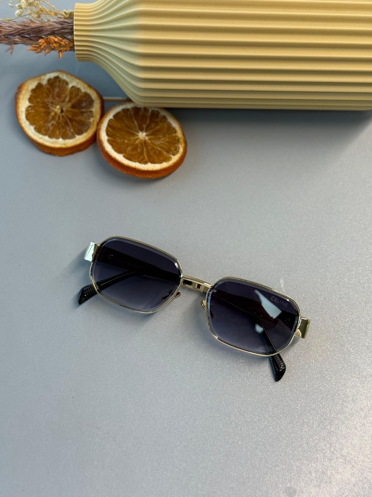 Celine Triomphe Metal Square Güneş Gözlüğü – Altın -Mor Degrade