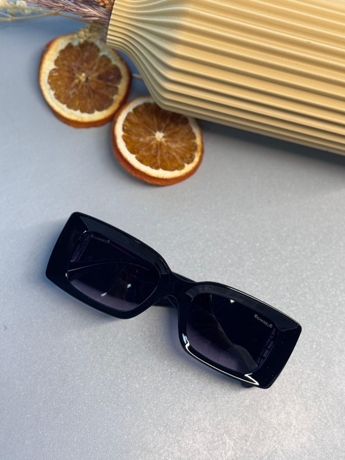 Chanel Dikdörtgen Güneş Gözlüğü – Siyah Gümüş