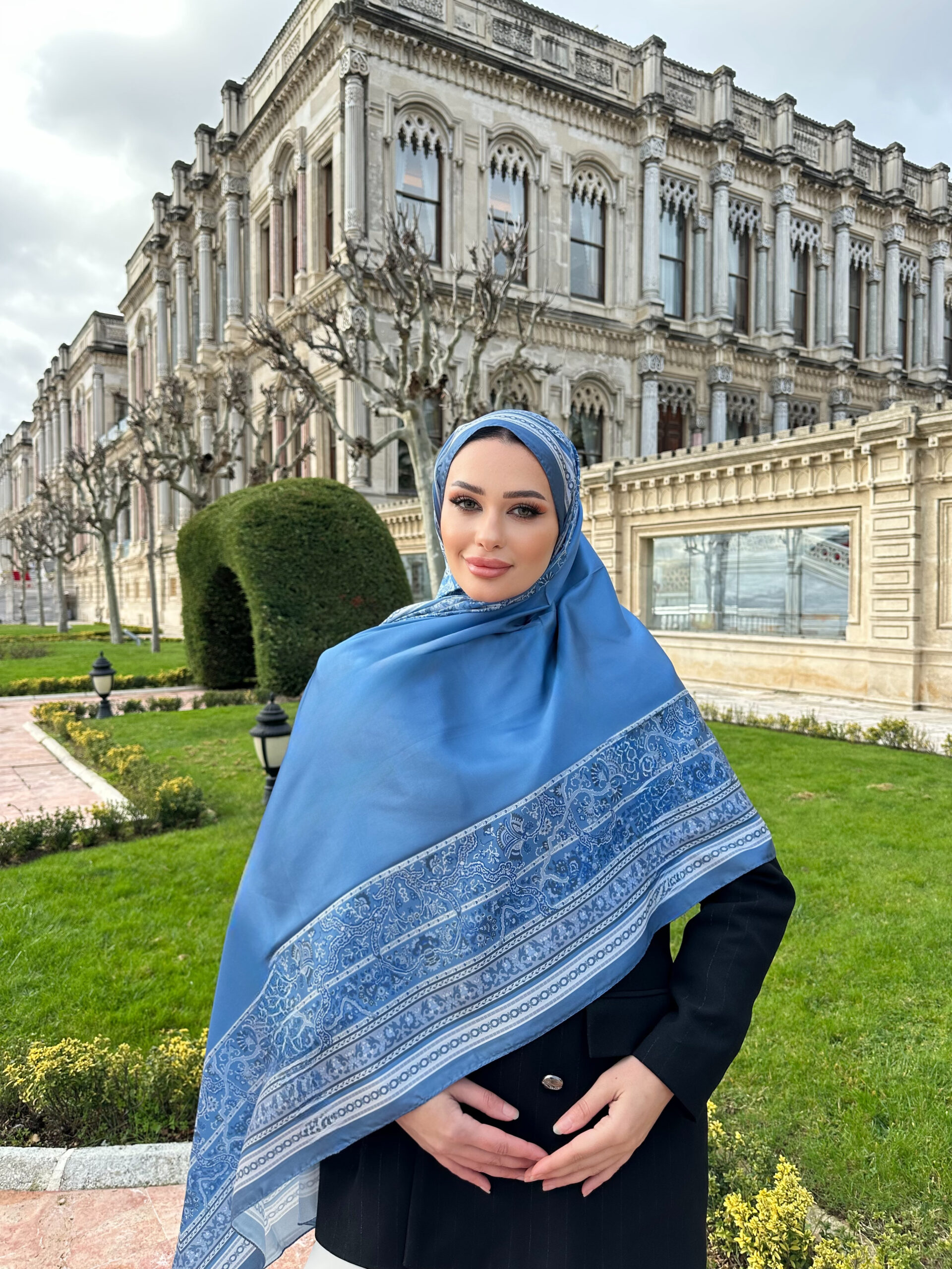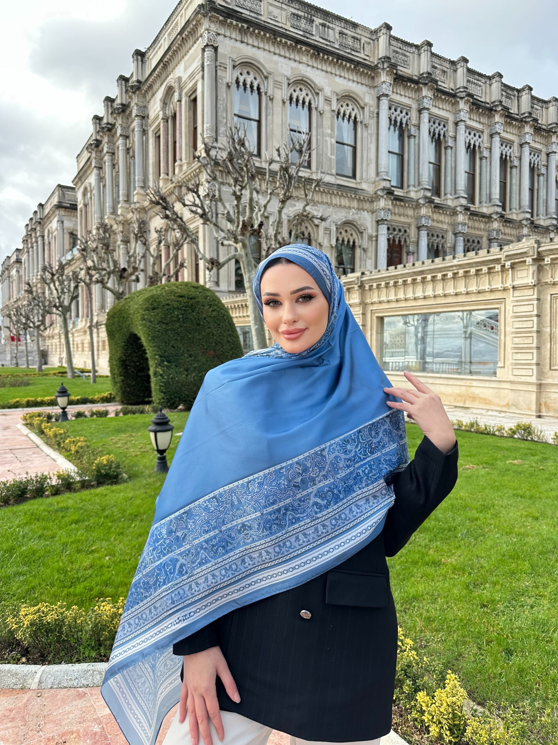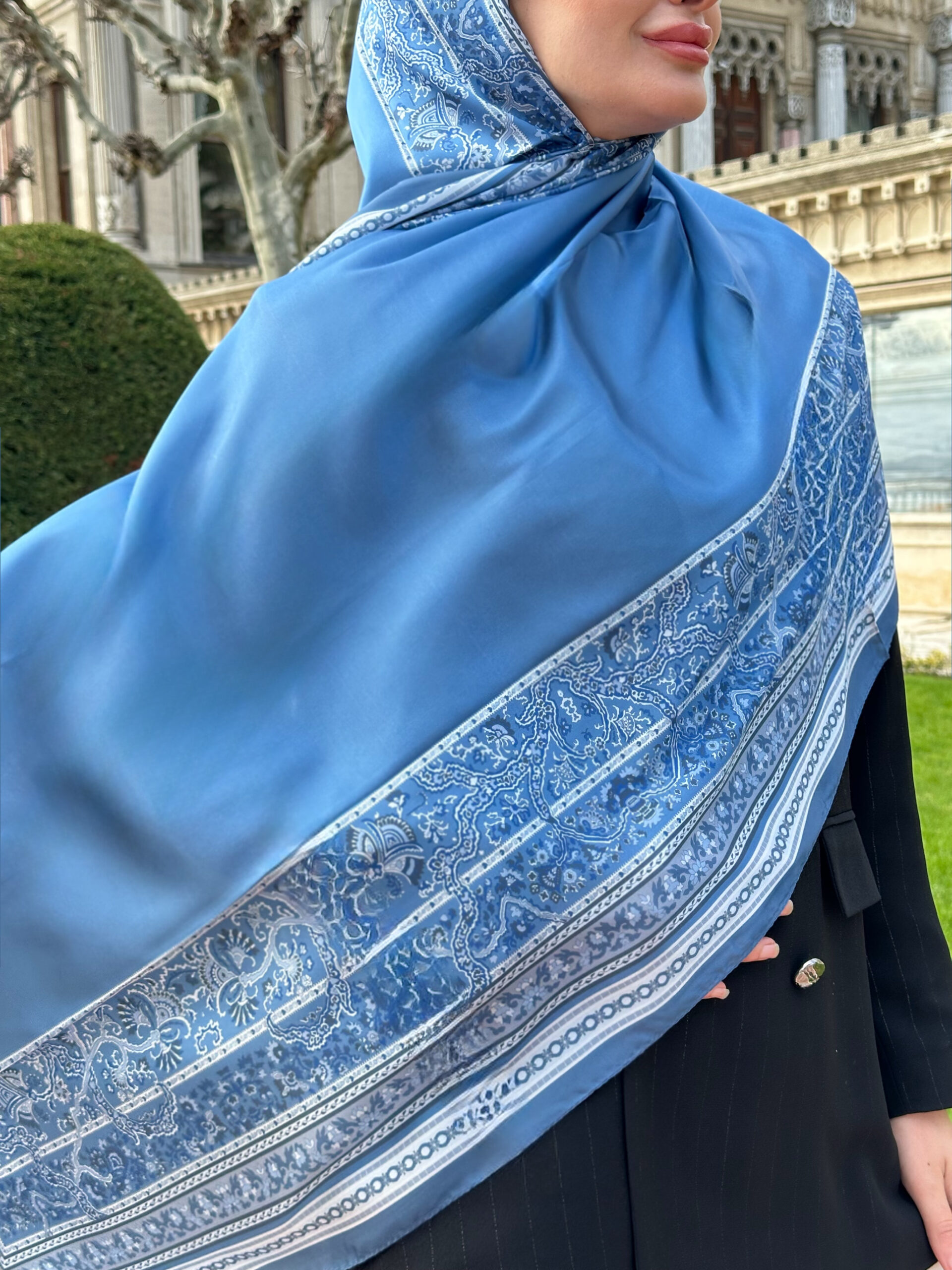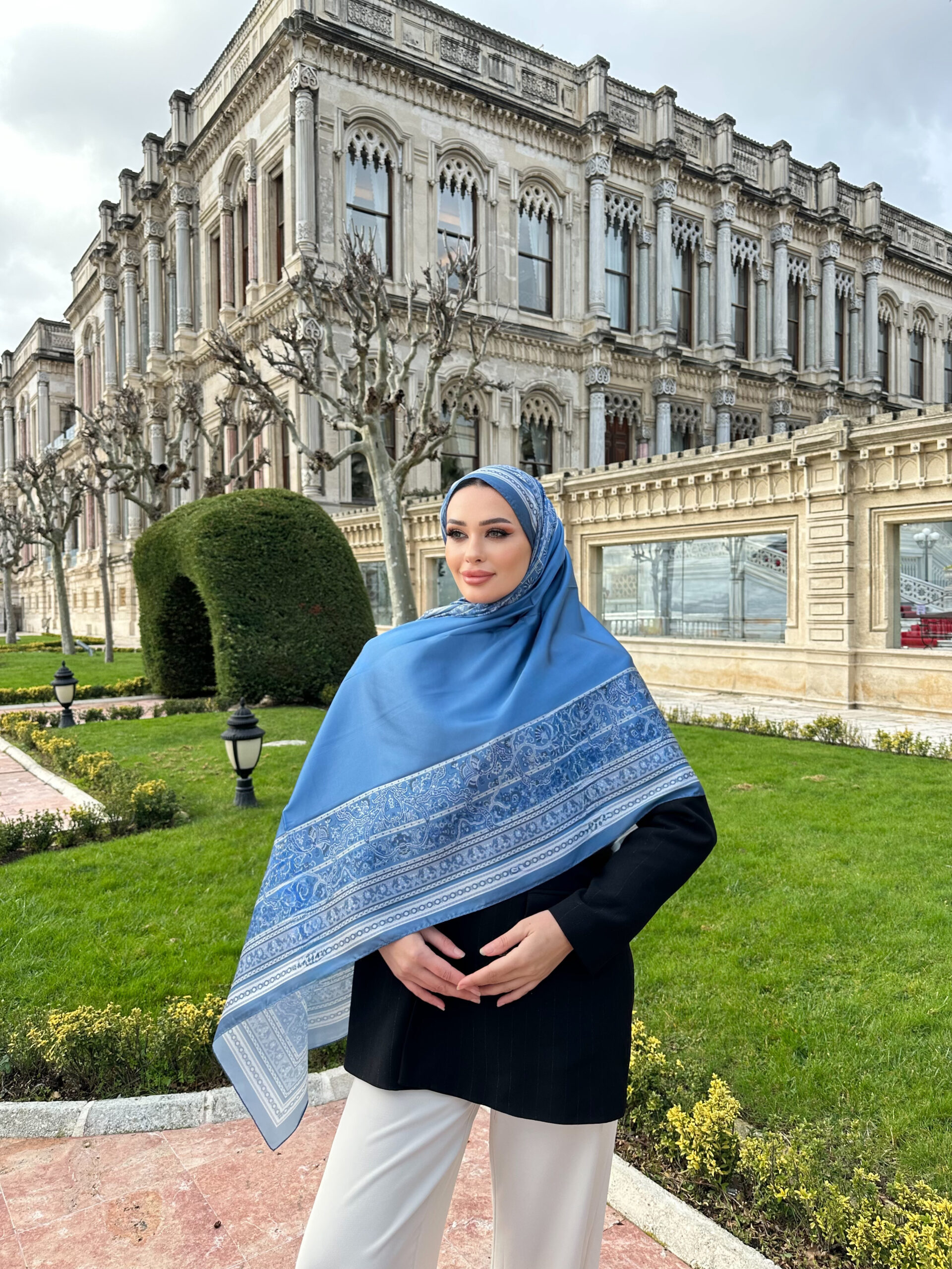 Çini Rüyası Vual İpek Şal 10101 - Duman MavisiÇini Rüyası Vual İpek Şal 10101 – Duman Mavisi