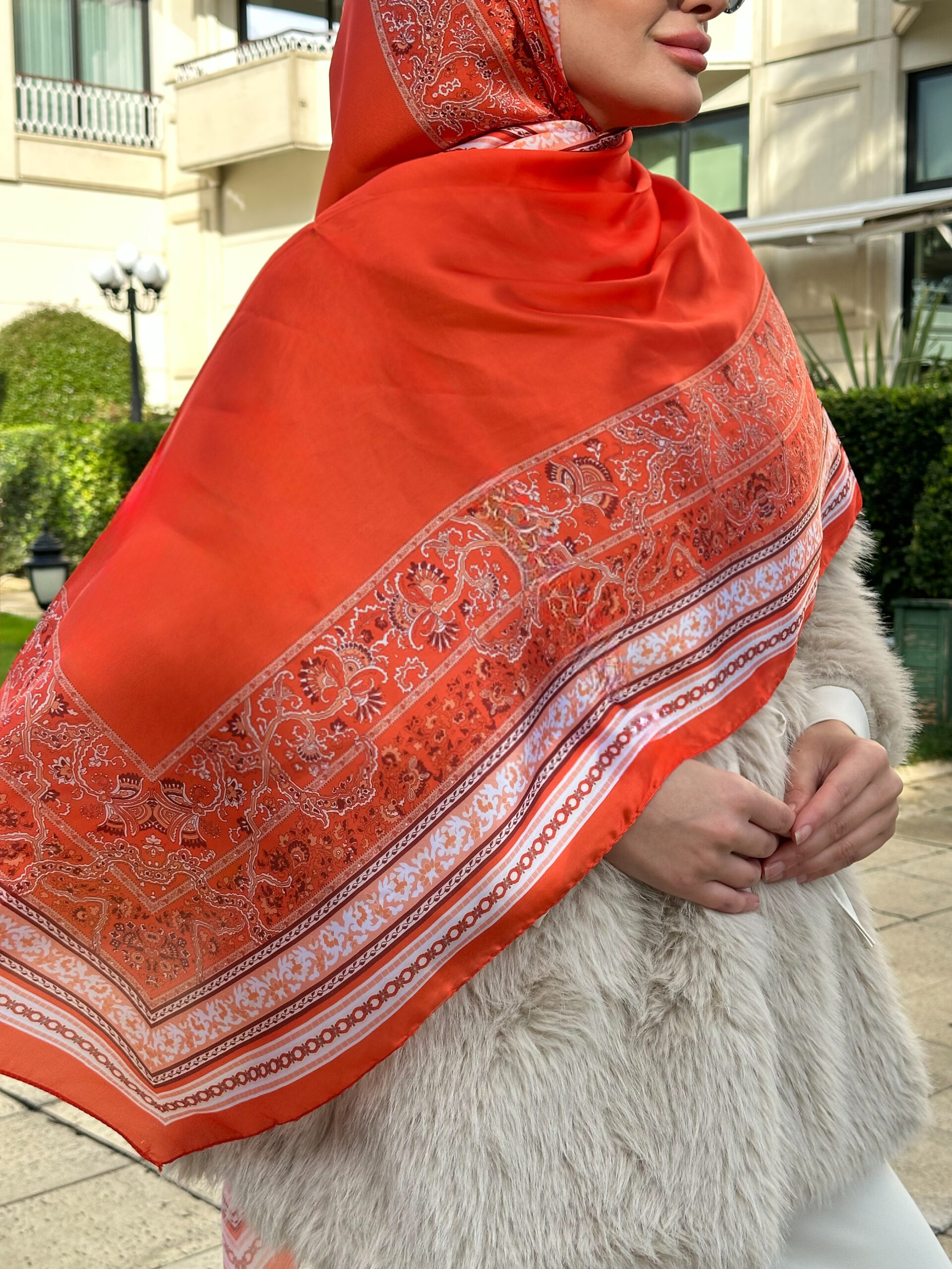 Çini Rüyası Vual İpek Şal 10101 - Neon TuruncuÇini Rüyası Vual İpek Şal 10101 – Neon Turuncu