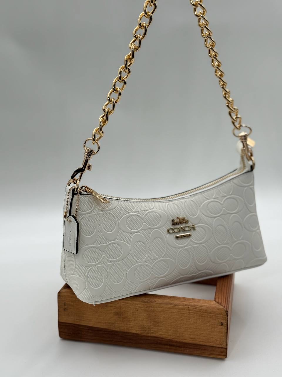 Coach Gofraj baskı zincirli baget beyaz çanta
