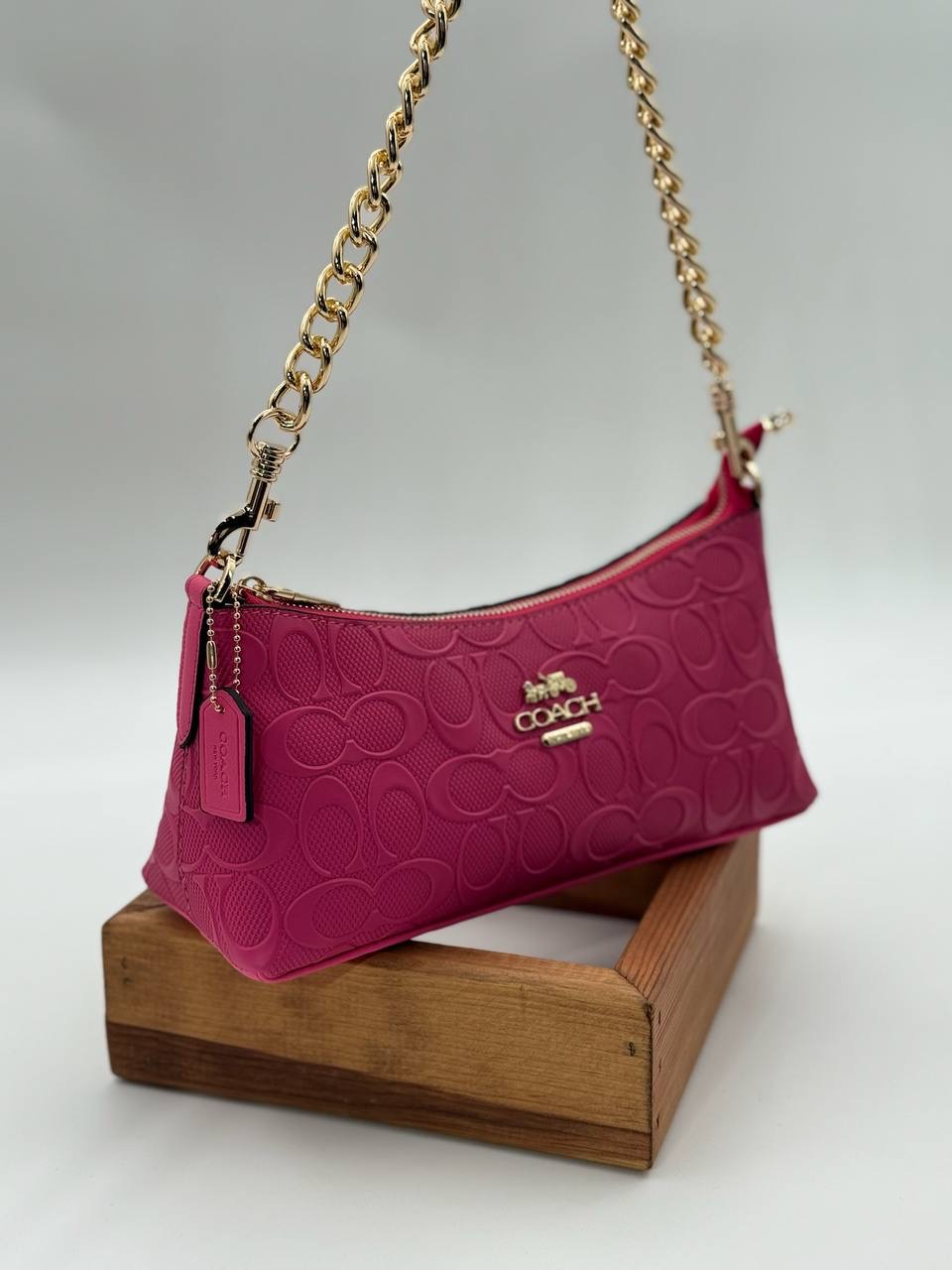 “Coach Gofraj baskı zincirli baget fuşya çanta” için yorum yapan ilk kişi siz olun