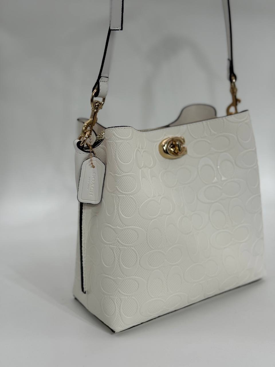 Coach Gofraj baskılı kilitli büzgülü beyaz çanta