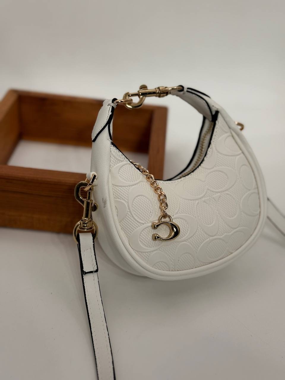 Coach Gofraj küçük boy ay çanta beyaz çanta
