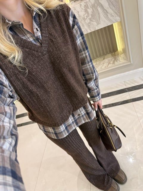 Cosy Gömlek Detaylı Triko Pantolon Takım-Kahve-ToprakCosy Gömlek Detaylı Triko Pantolon Takım-Kahve-Toprak