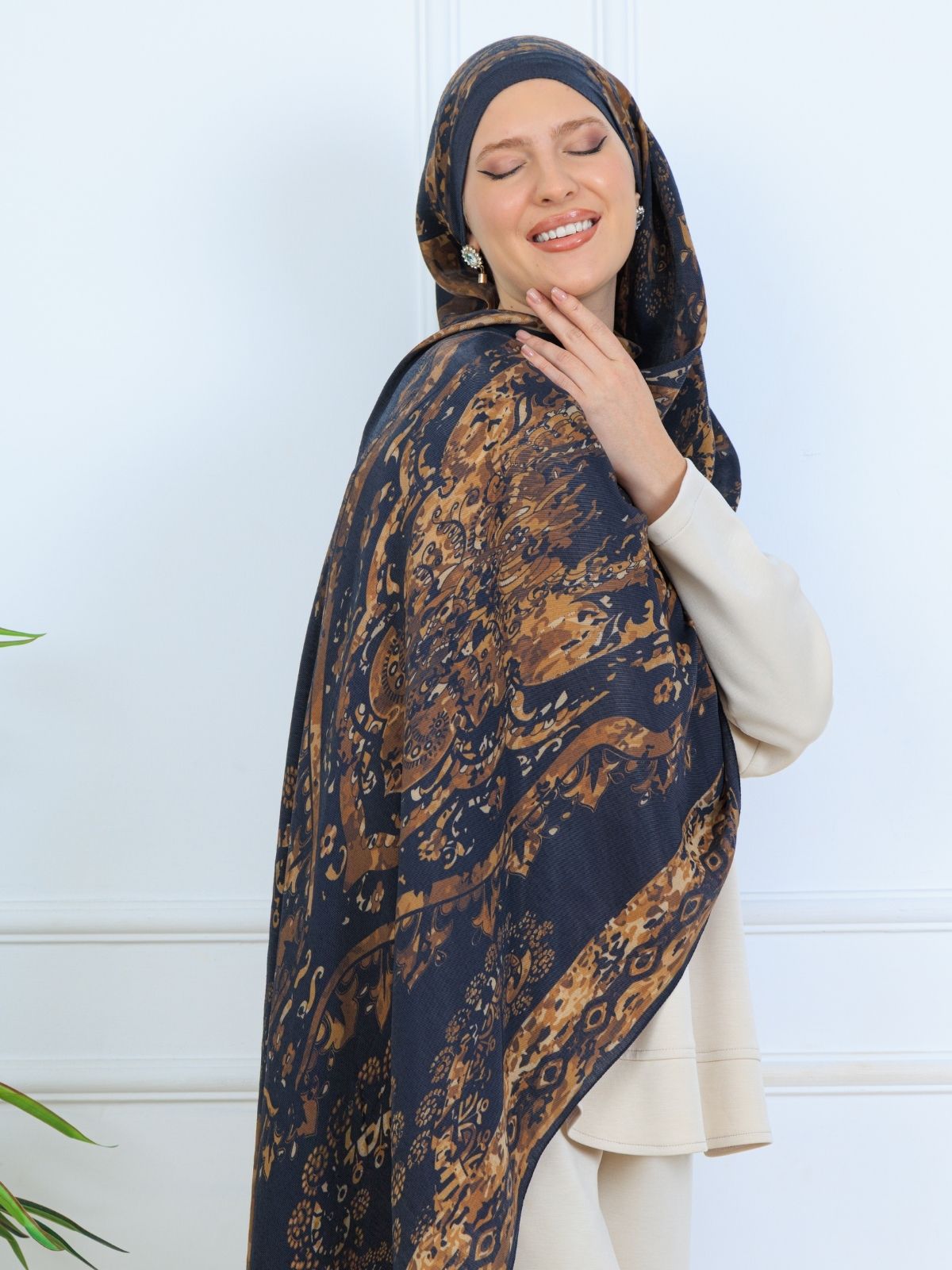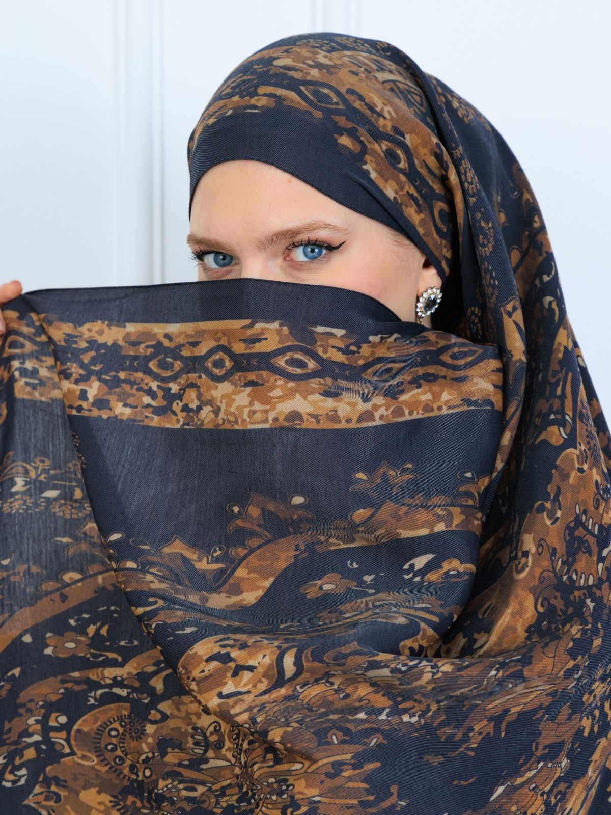 Derin Yansıma  model şal, doğadan ilham alan zarif desenleri ve yumuşak geçişleriyle stilinize romantik bir dokunuş katıyor. Modern ve klasik çizgilerin uyumunu yansıtan bu özel tasarım, her kombine kolaylıkla uyum sağlayarak şıklığınızı tamamlar.