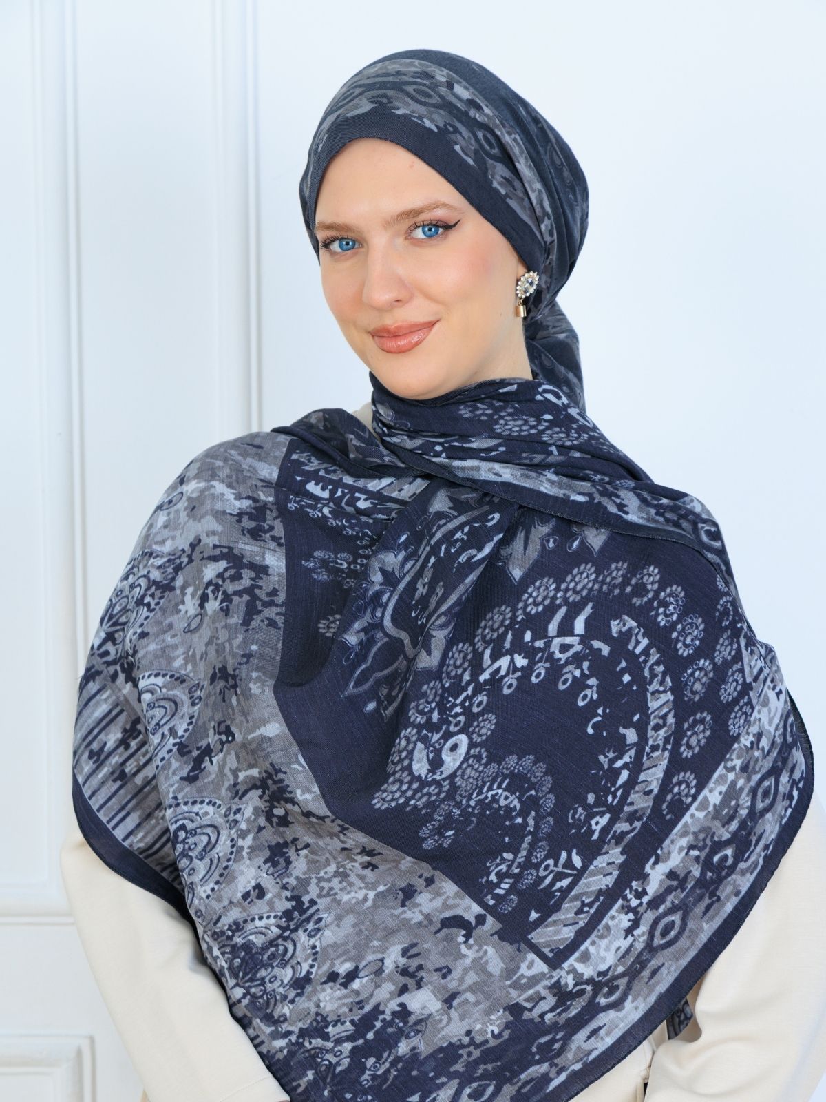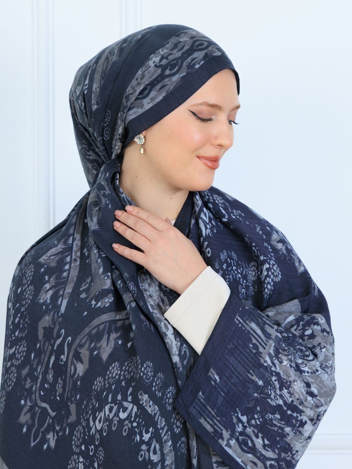 Derin Yansıma model şal, doğadan ilham alan zarif desenleri ve yumuşak geçişleriyle stilinize romantik bir dokunuş katıyor. Modern ve klasik çizgilerin uyumunu yansıtan bu özel tasarım, her kombine kolaylıkla uyum sağlayarak şıklığınızı tamamlar.
