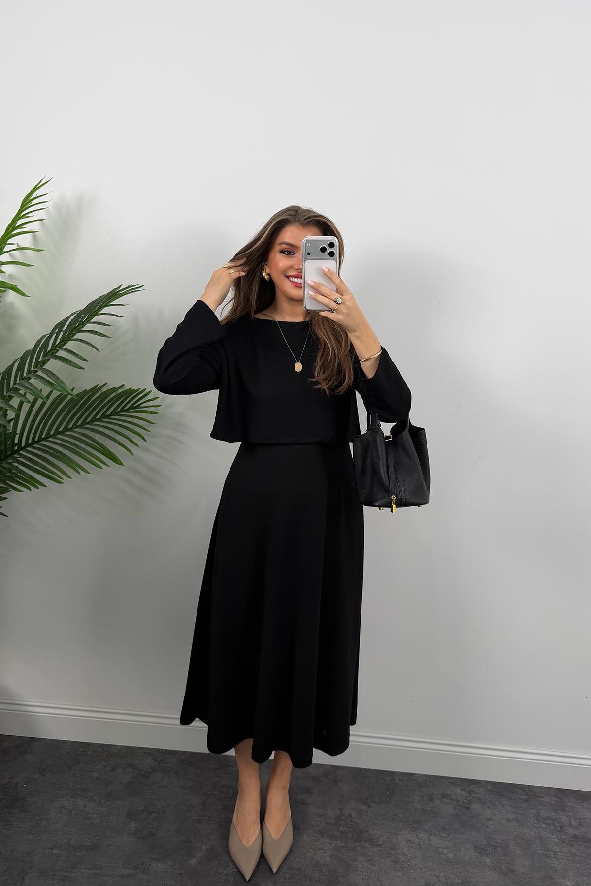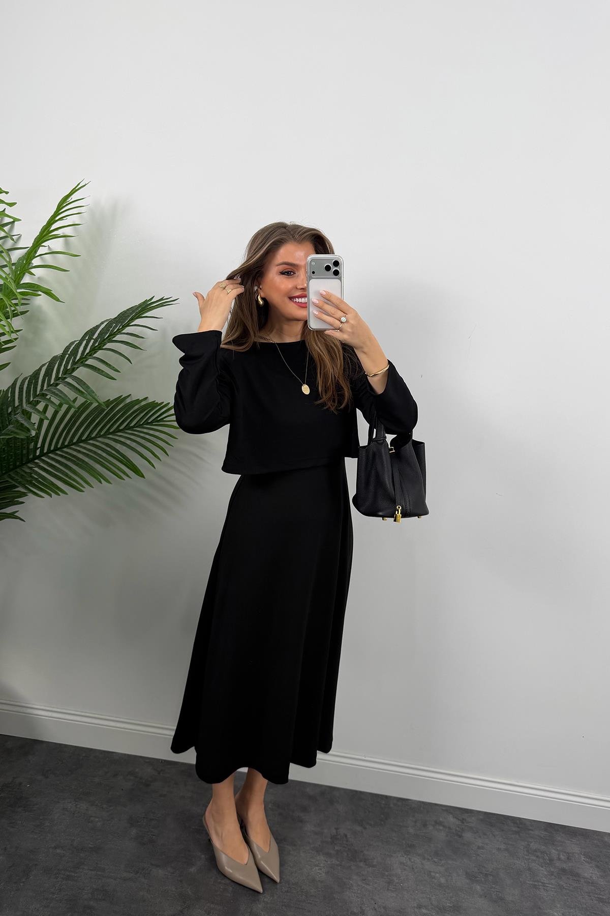 Elbiseli Modal Takım Siyah