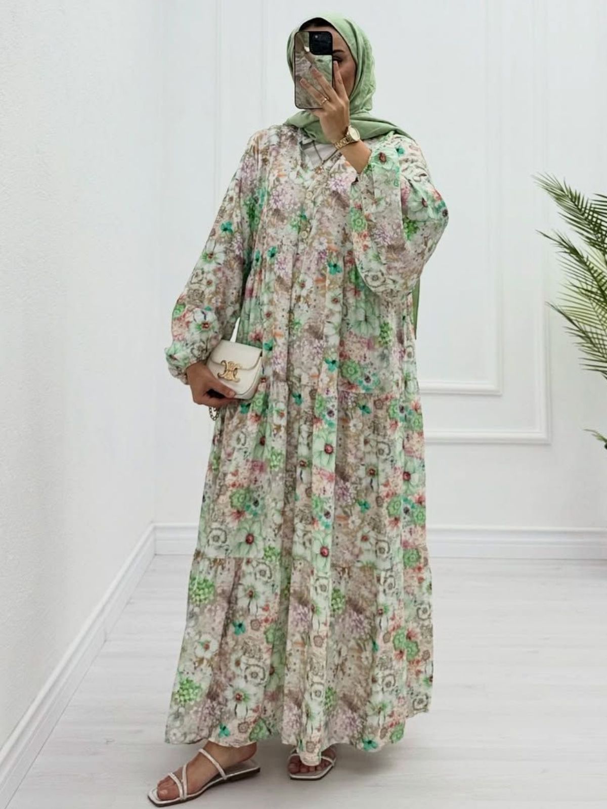 Eleya Çiçek Harmanı Elbise ELB100233 – Çağla