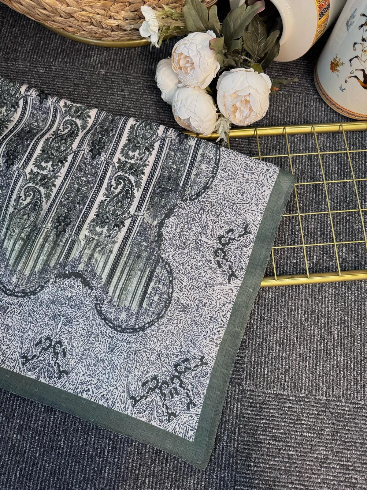 Doğal ipekten üretilmiş bu şal, etnik floral desenleriyle zamansız bir şıklık sunar. Hafif ve yumuşak dokusu sayesinde teninize nazikçe dokunur. Günlük stilinize zarif bir dokunuş katarken, özel gün kombinlerinde de özgün bir tamamlayıcı olarak öne çıkar.
