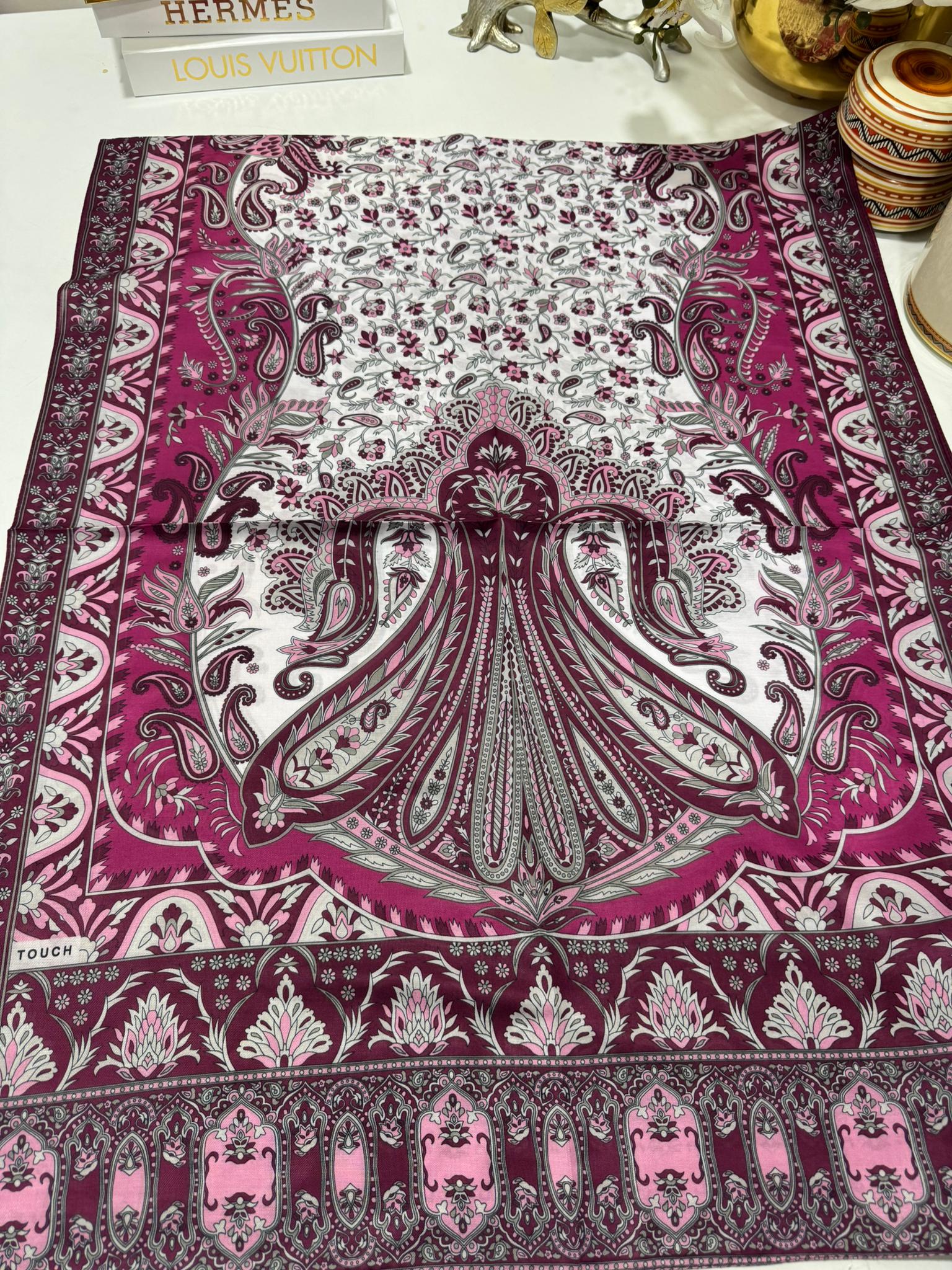 etnik hint deseni pamuk ipek şal -313131 vişne/beyaz