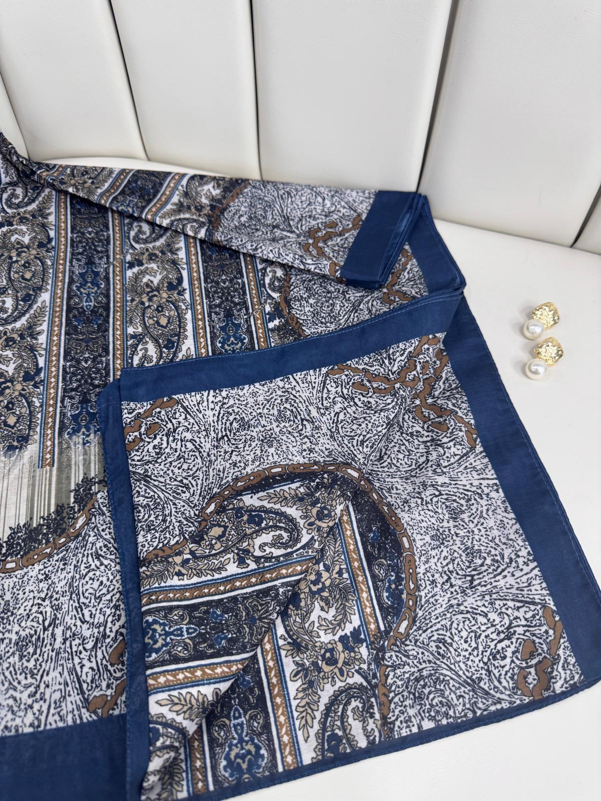 Etro Desen Pamuk İpek Şal 49733 – Petrol Mavisi