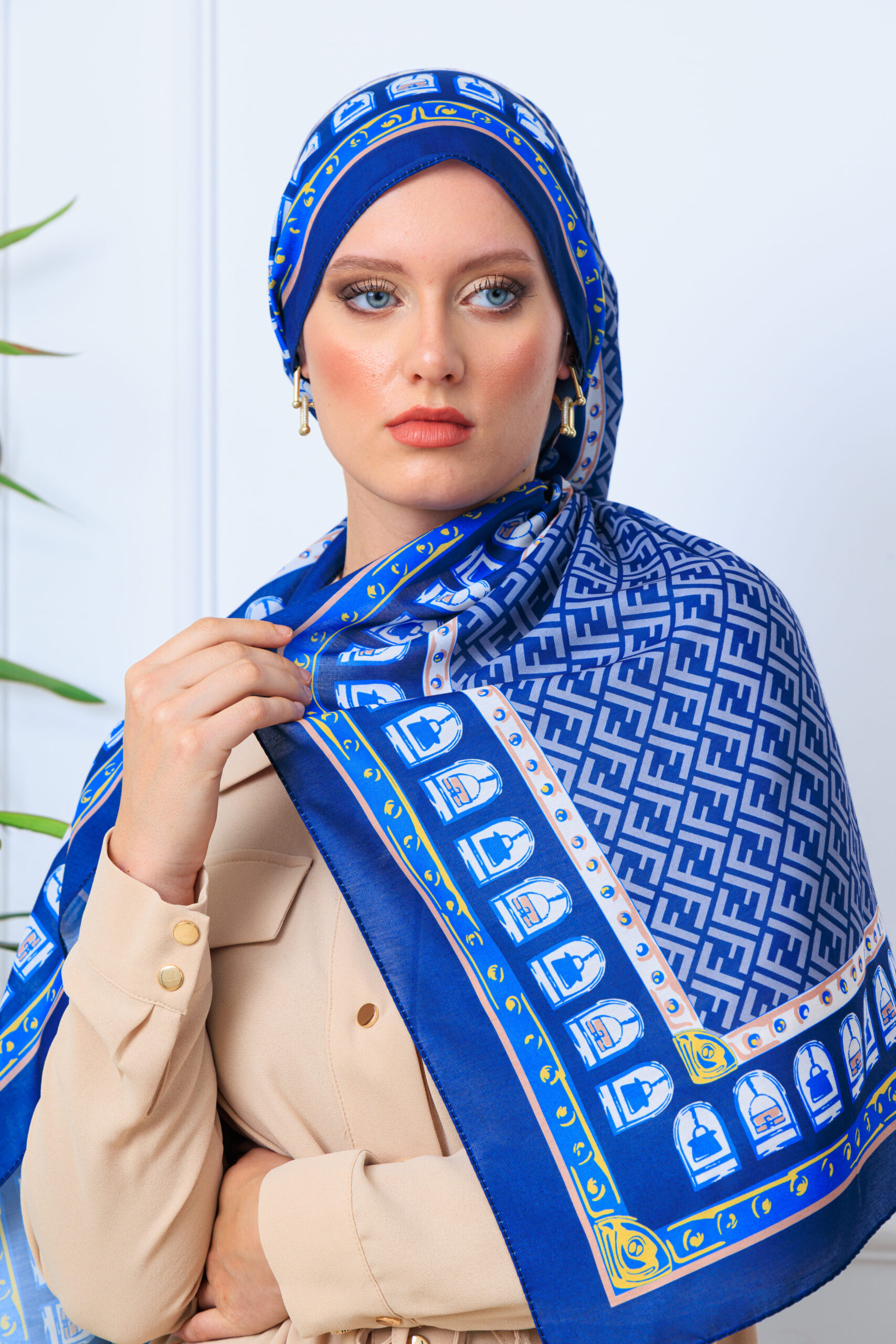 Fendi Monogram Pamuk Soft Şal 64302 – Lacivert