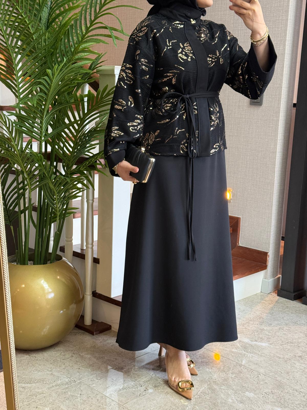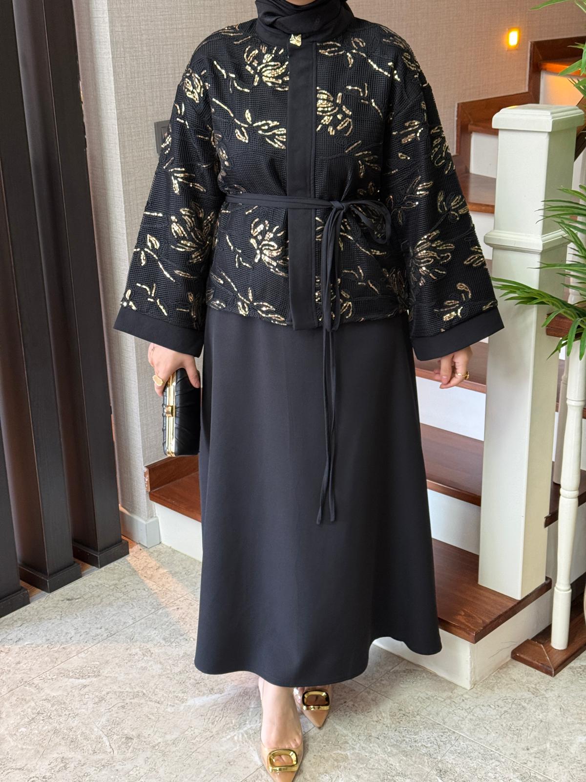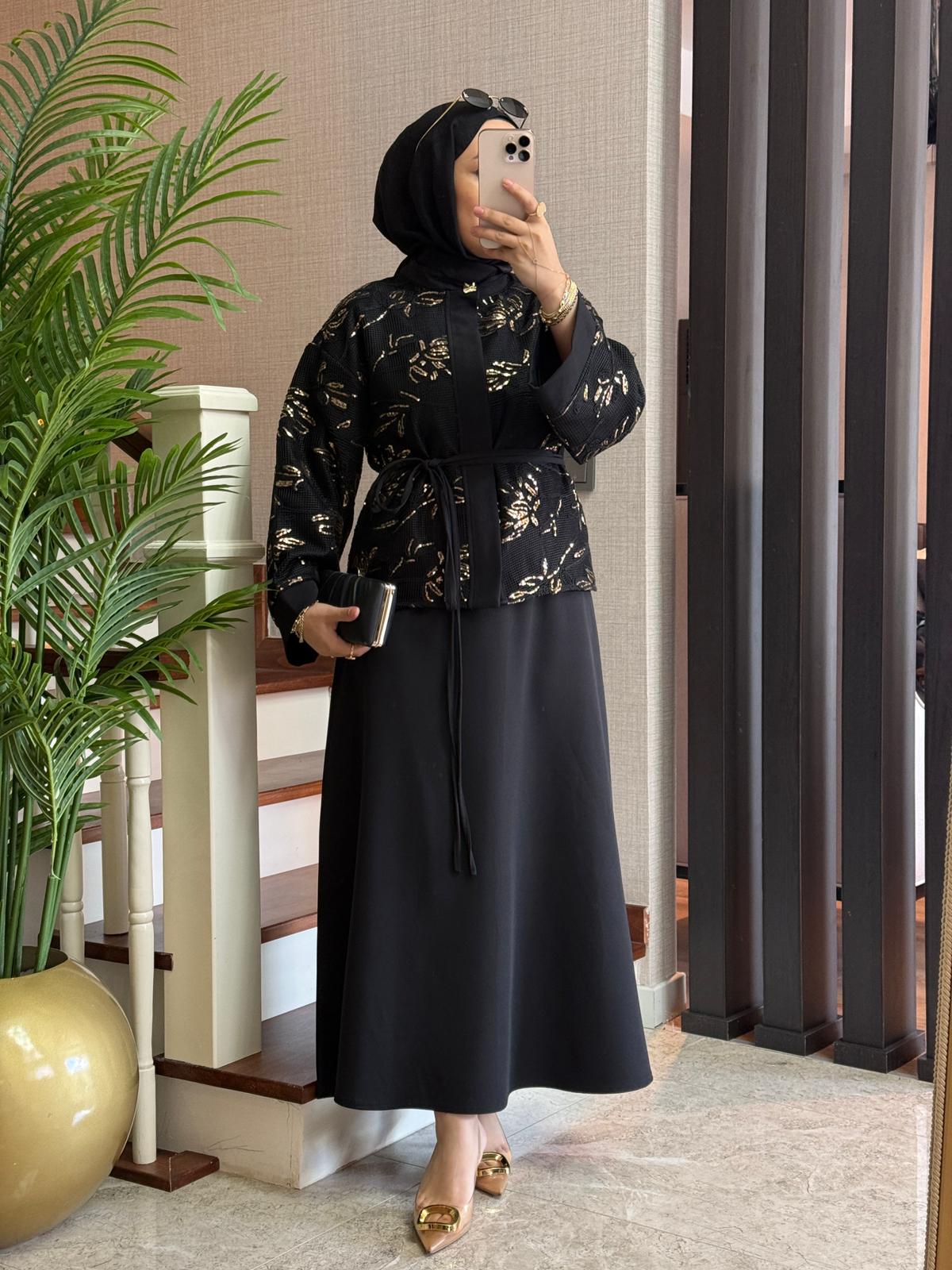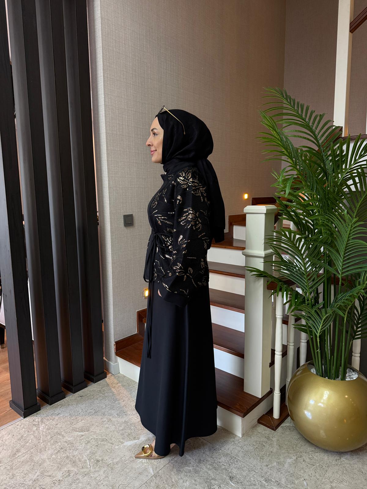 Zarif file payet detayları ve şık kesimiyle özel günlerinizde göz alıcı bir stil sunar. Modern ve zarif tasarımıyla hem rahat hem şık bir görünüm sağlar.