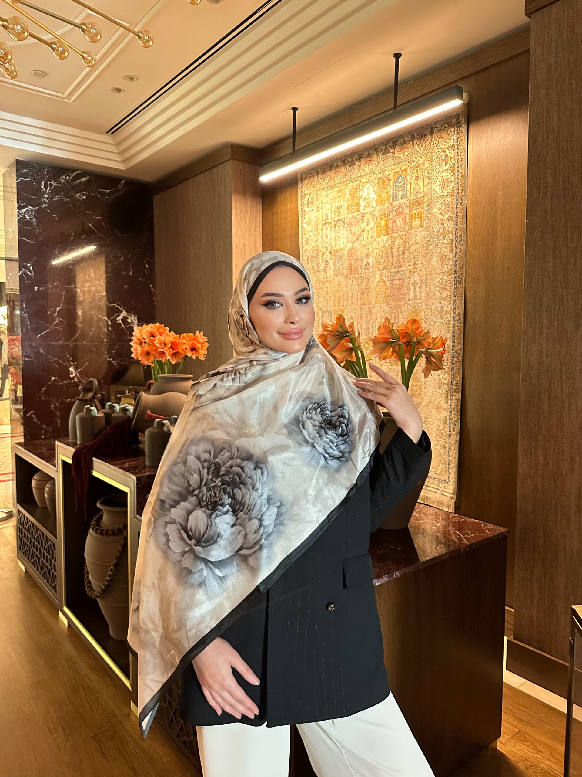 Flora Vual İpek Şal 10100 – Siyah Duman