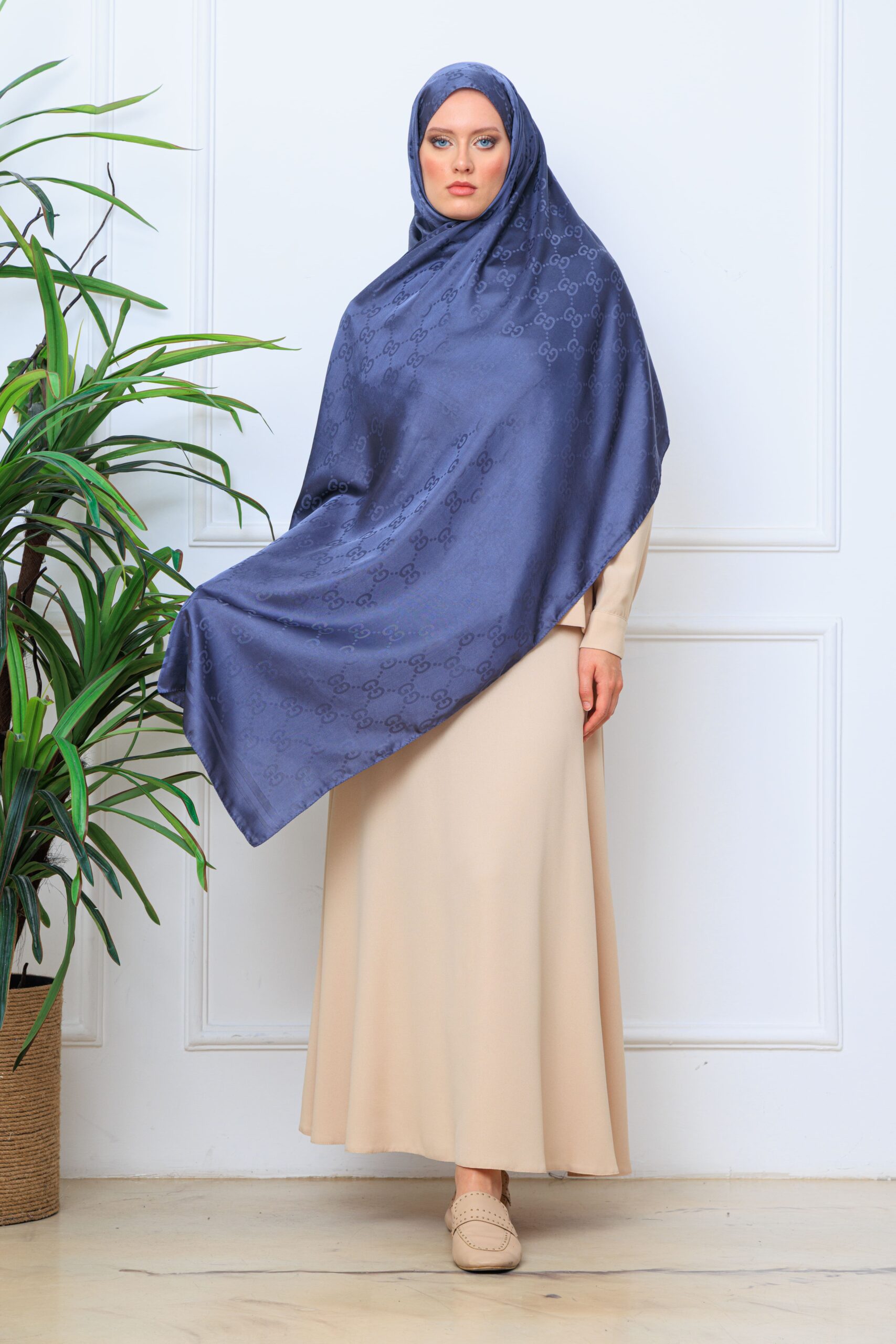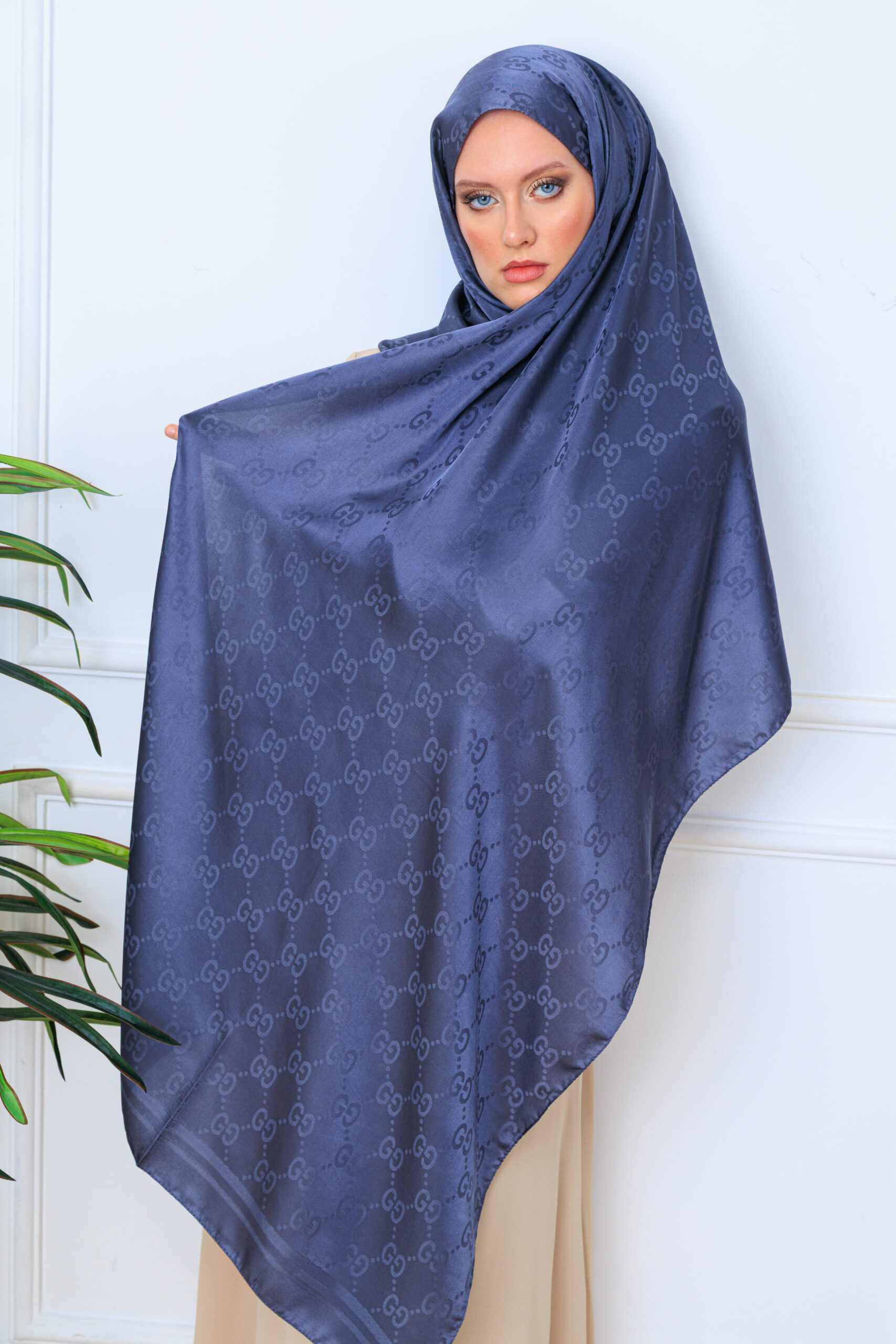 G Desen Pamuk İpeksi Jakar Şal – İndigo