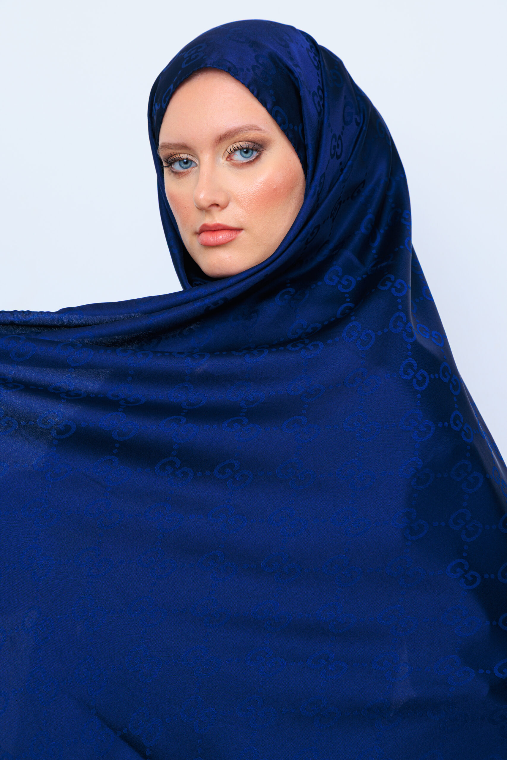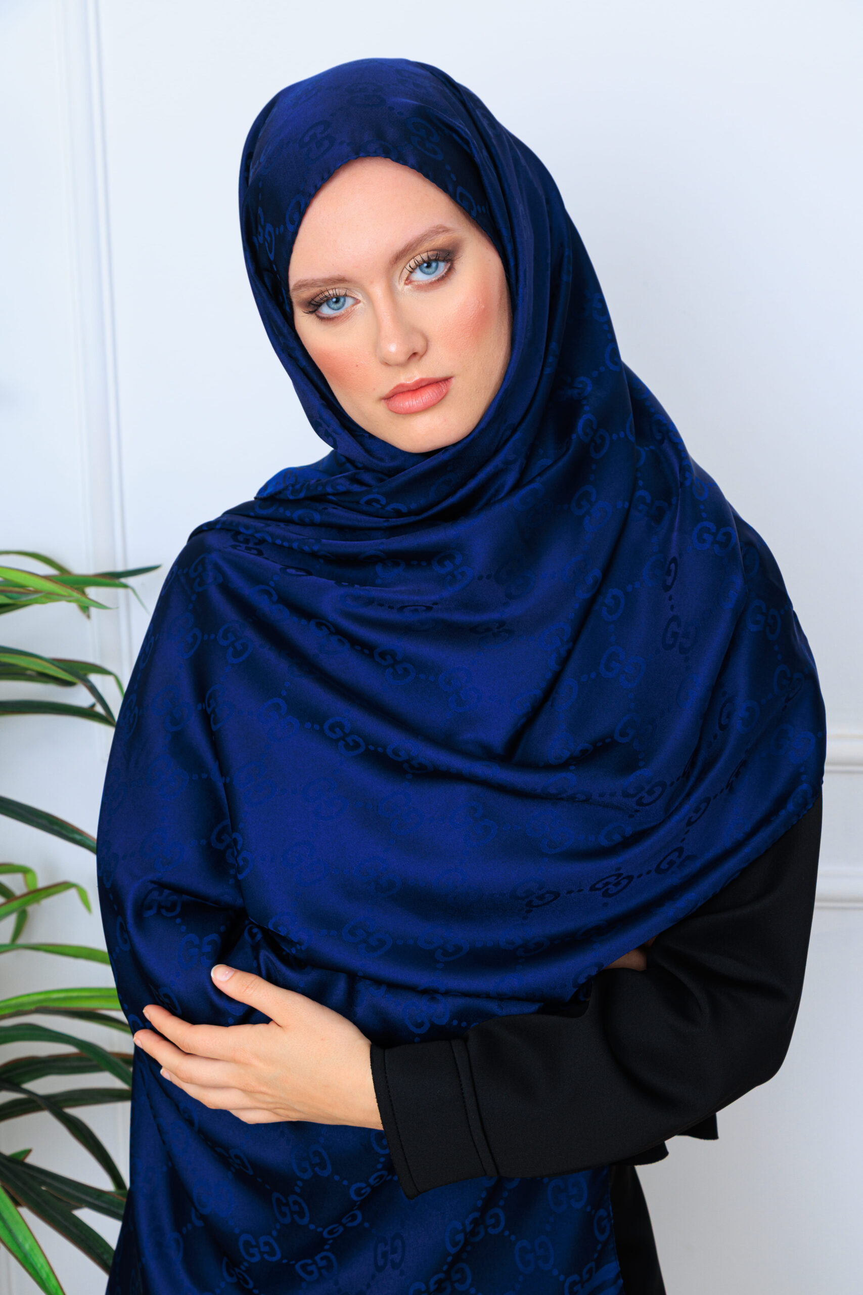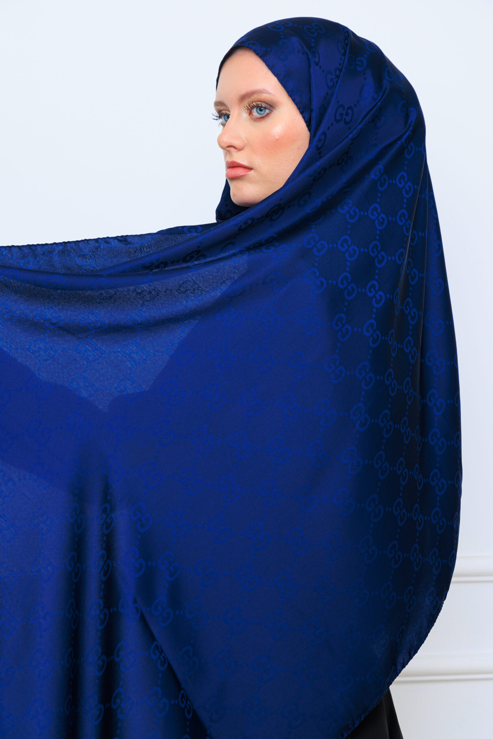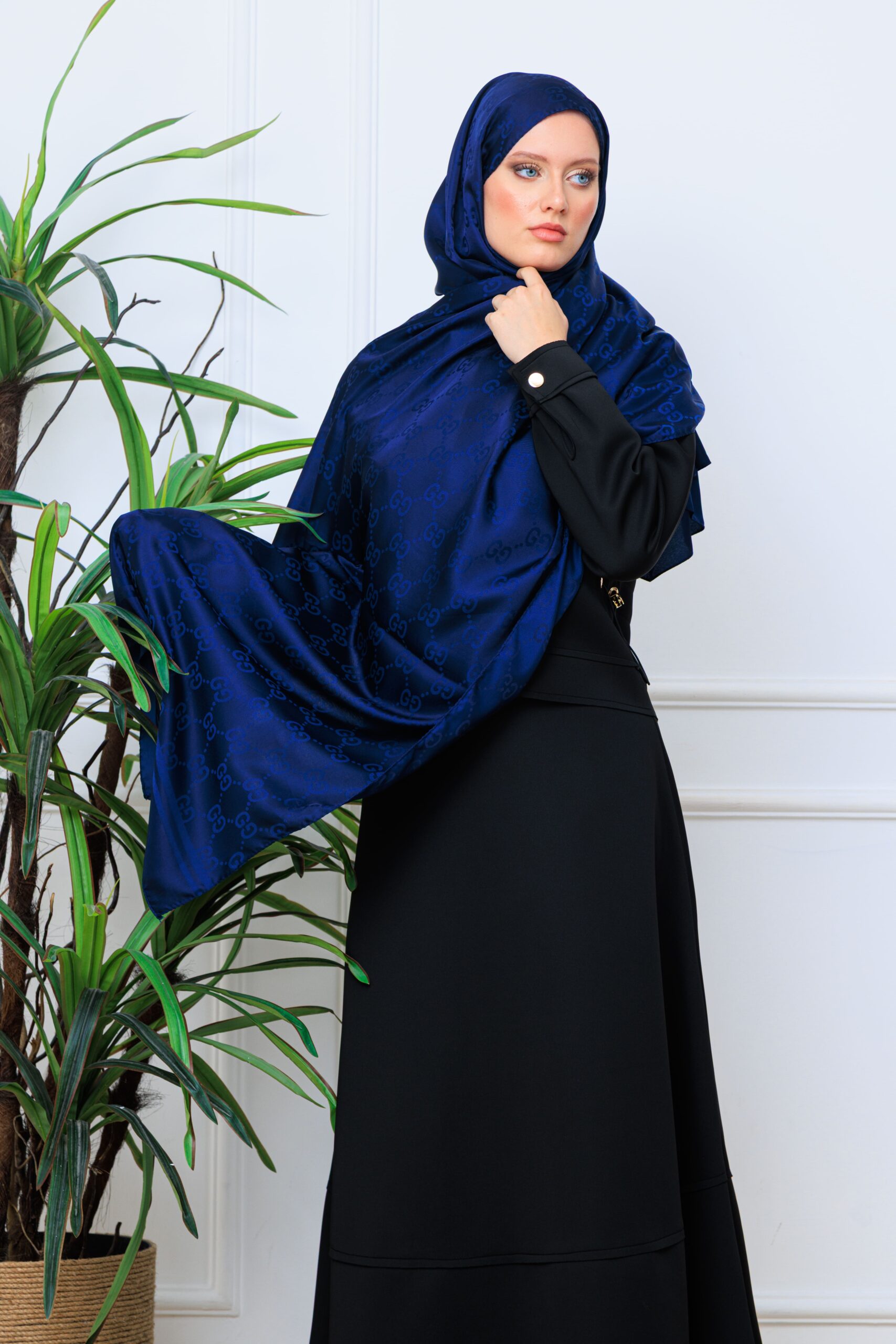 G Desen Pamuk İpeksi Jakar Şal - LacivertG Desen Pamuk İpeksi Jakar Şal – Lacivert