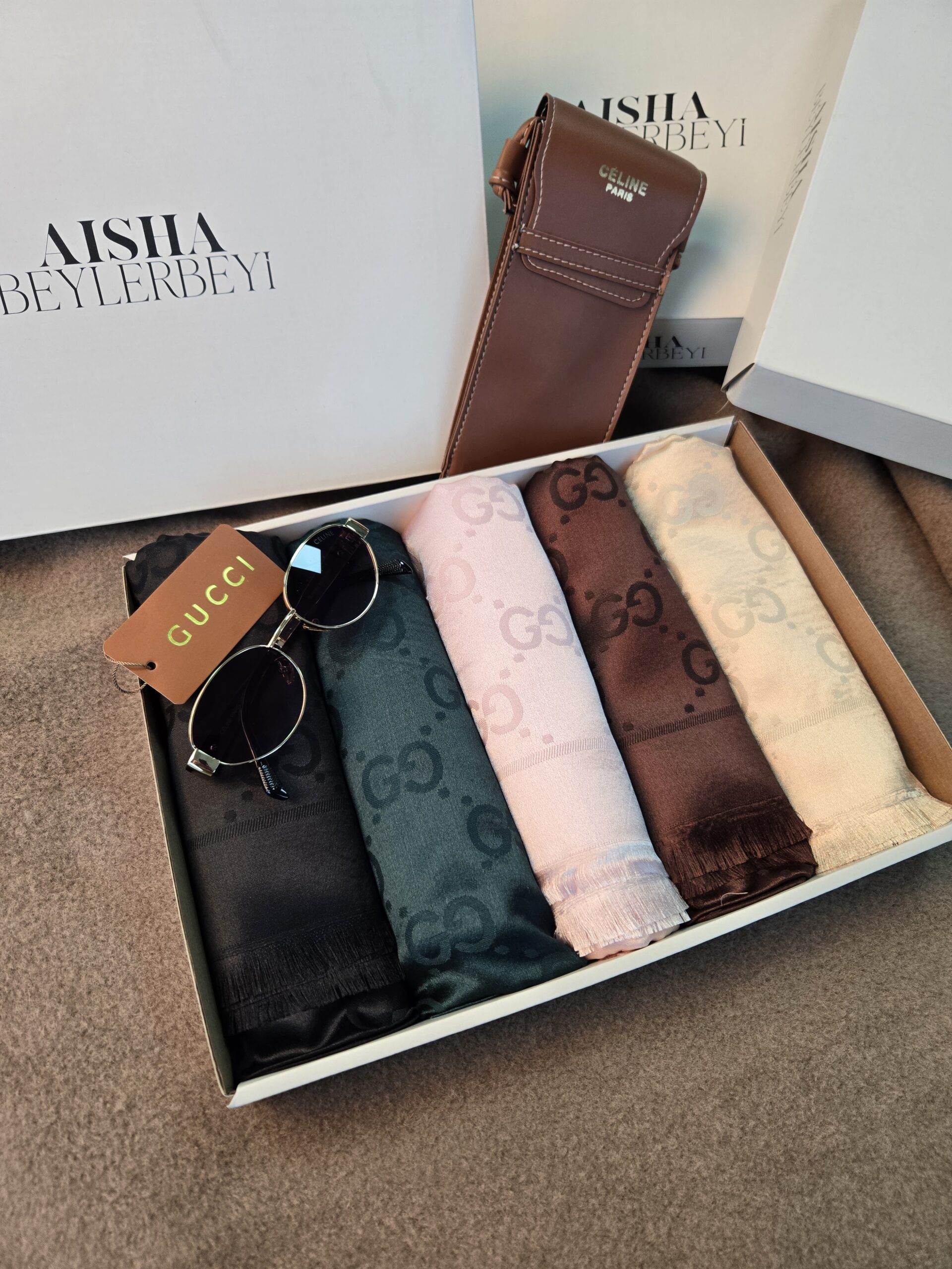 G İthal Kaşmir & İpek Şal Kutusu – İthal Gözlük Çantası Hediyeli