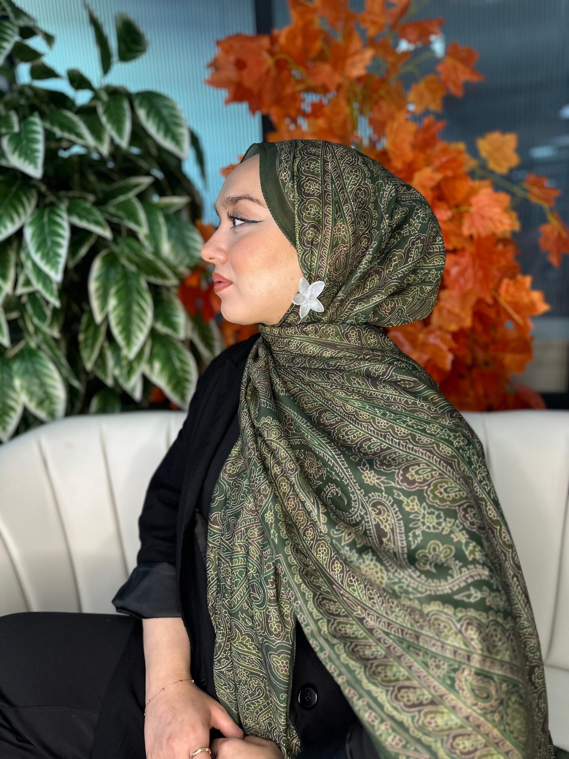 Zamansız şıklığın zarif bir yansıması: Hürrem Desen Pamuk İpek Şal, klasik doğu motiflerini modern dokunuşlarla buluşturuyor.