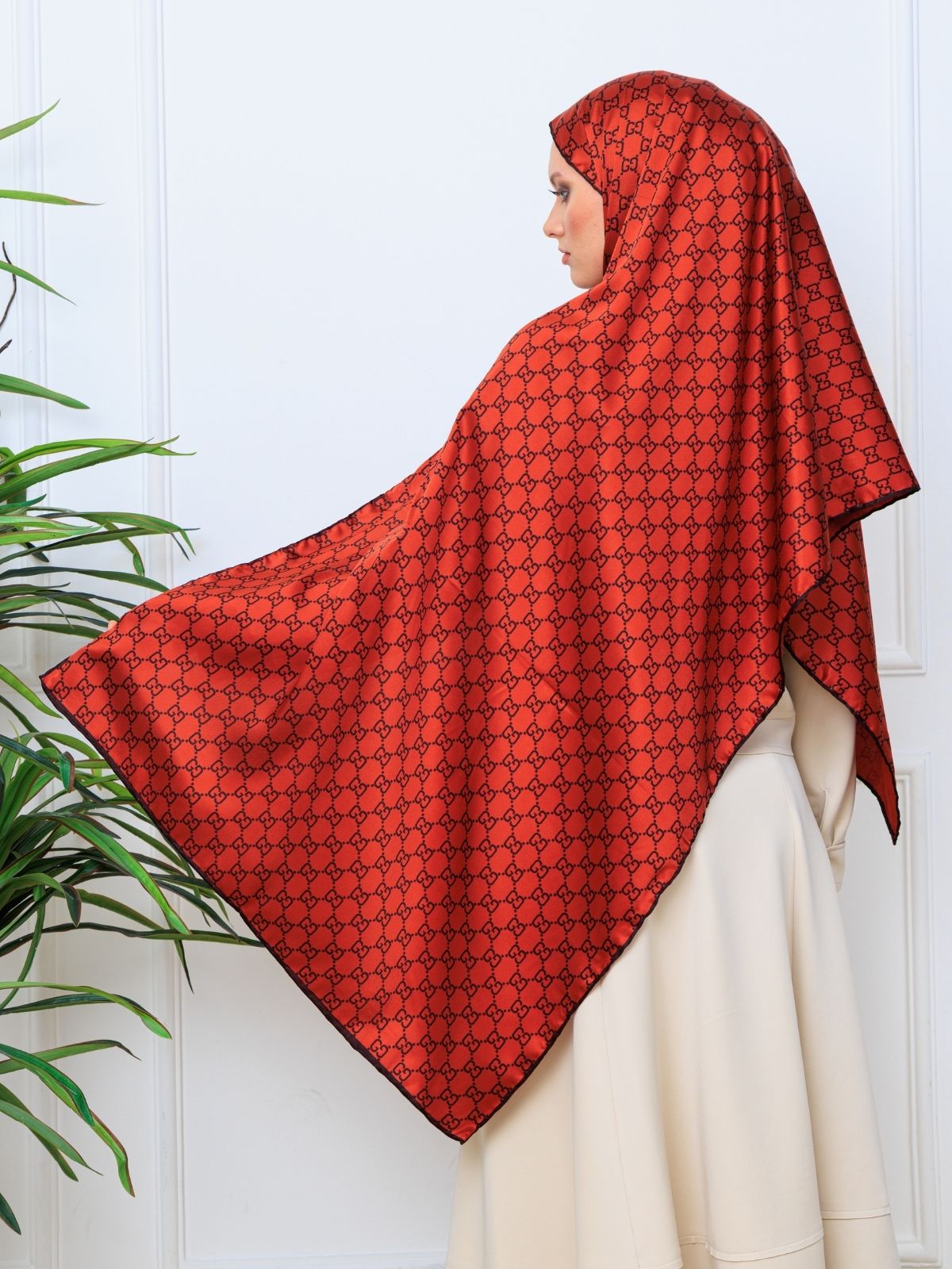 İthal Çifttaraflı Gucci İnci Vual İpek Şal-50140 – Kiremit