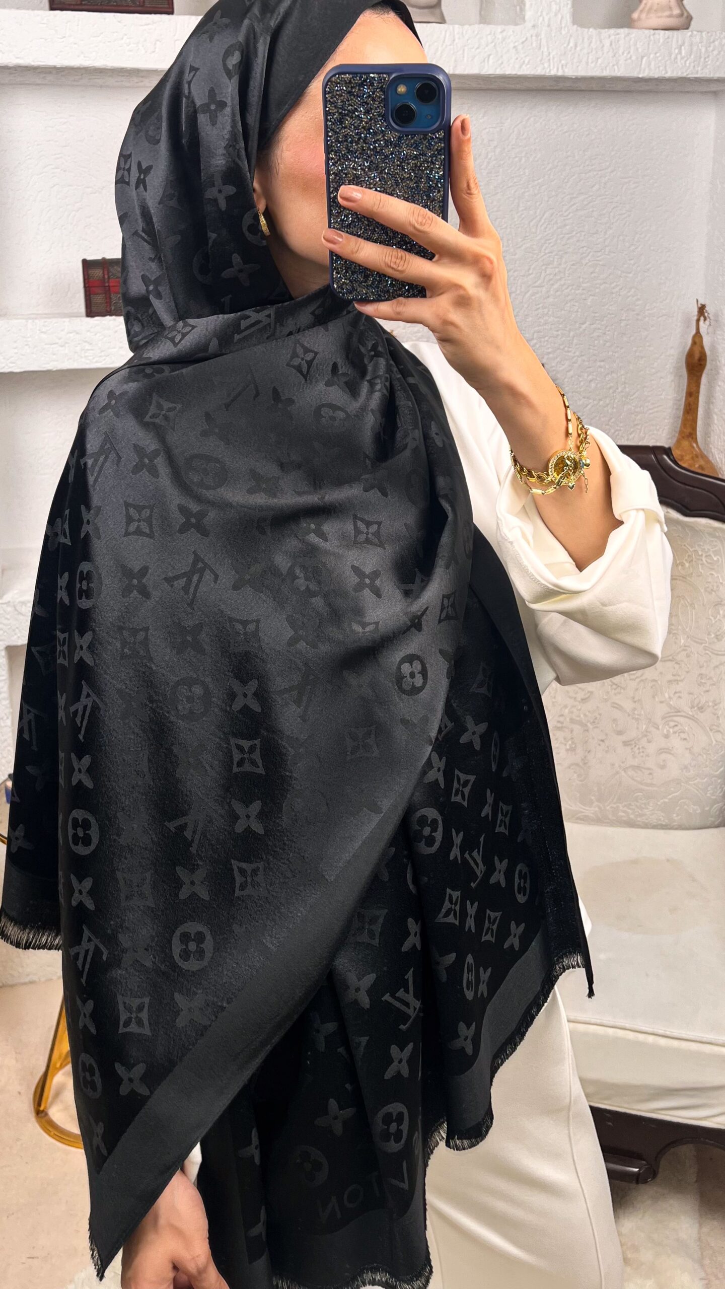 İthal Lv Pamuk Yün İpek Şal 49104 - Siyahİthal Lv Pamuk Yün İpek Şal 49104 – Siyah