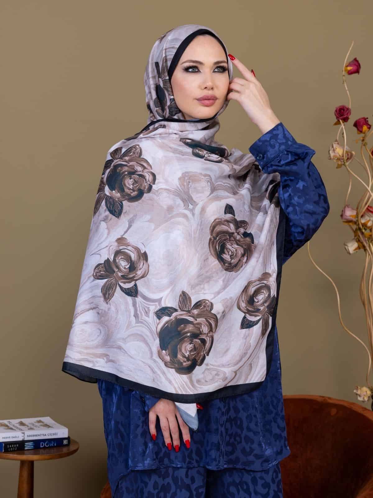 Gül desenli zarif baskısı, feminen ve şık bir duruş sergiler. Soft renk geçişleri ve yeşilin huzur veren tonları, günlük kombinlerden özel davet stillerine kadar her ortama uyum sağlar. Uçuş uçuş yapısı sayesinde kolay şekil alır, kayma yapmaz.