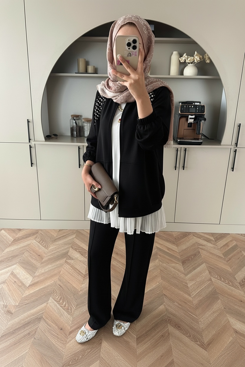 Özellikle akşam buluşmaları, misafirlikler ve özel programlarda sade şal ve zarif aksesuarlarla tamamlandığında şık bir dış görünüm elde etmeye yardımcı olur.