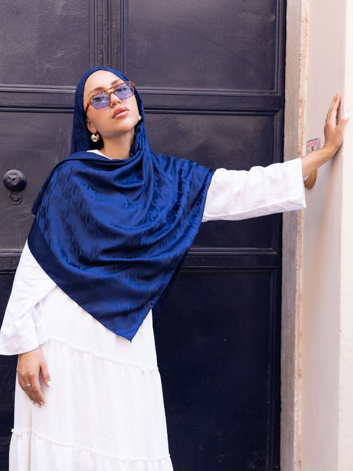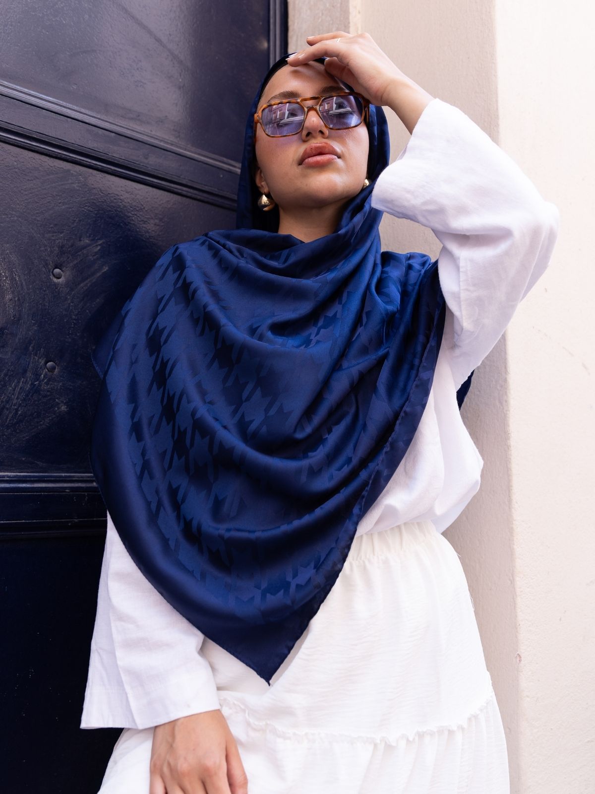 Kazayağı Desen Pamuk İpeksi Jakar Şal-53354-LacivertUygunluk: 241 adet stokta