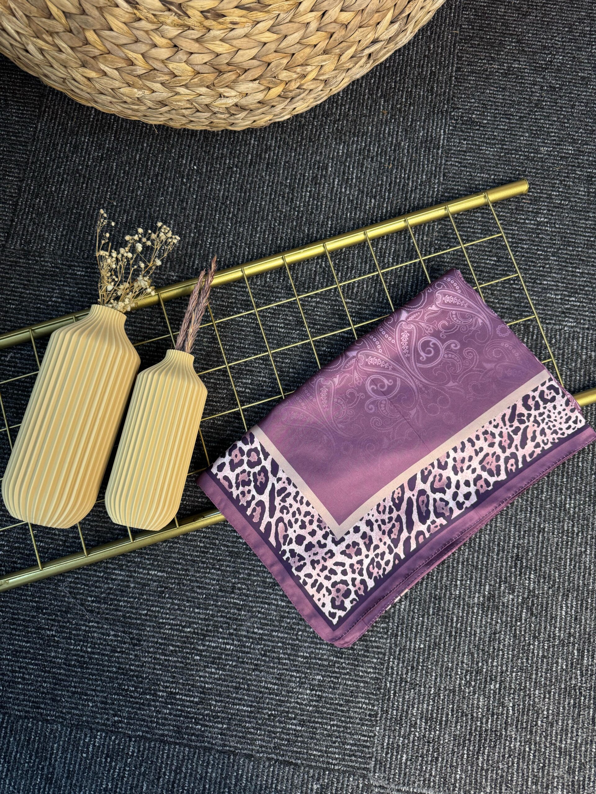 Leopar Detaylı Pamuk İpek Şal-456654-Gül Kurusu
