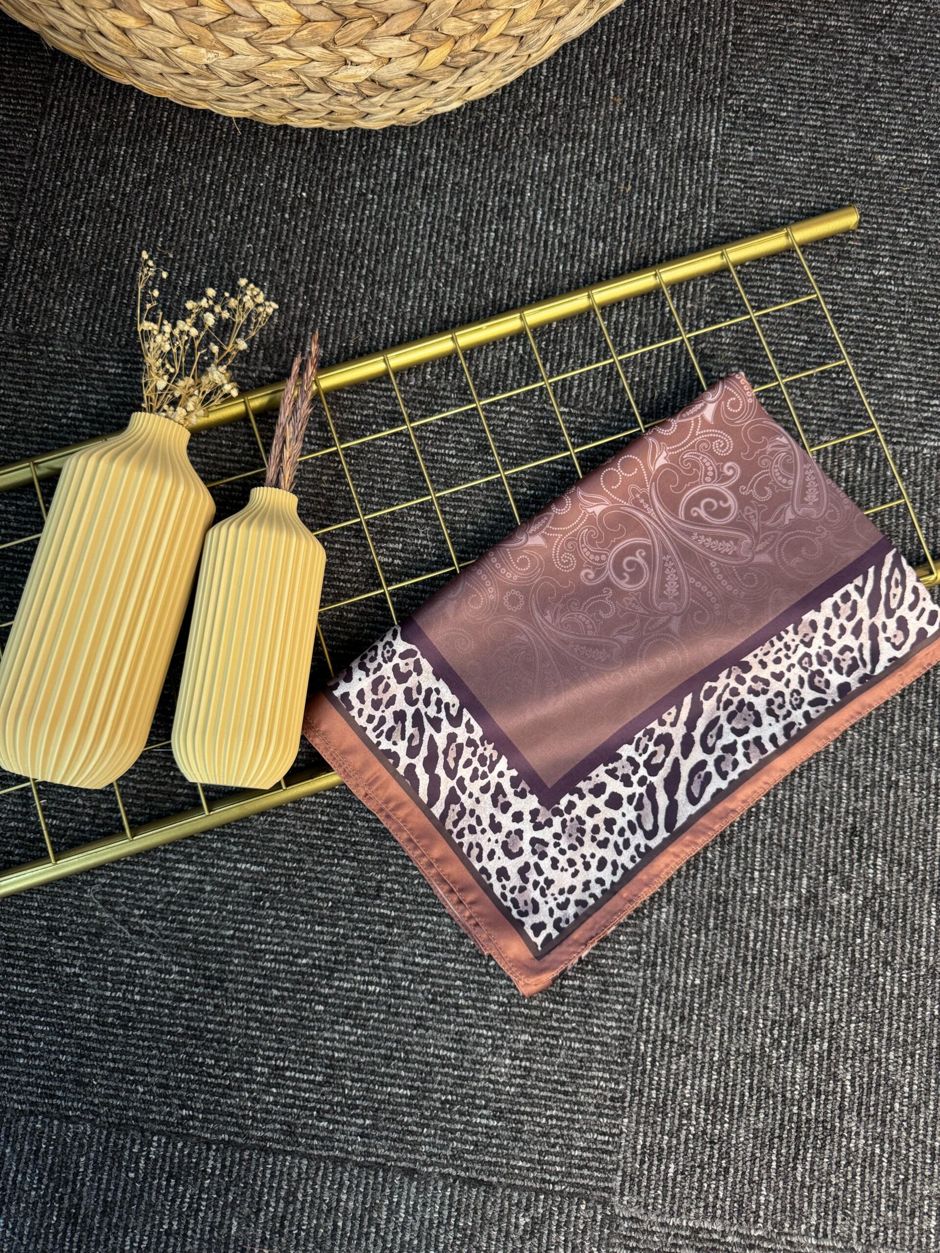Leopar Detaylı Pamuk İpek Şal-456654-Kahve