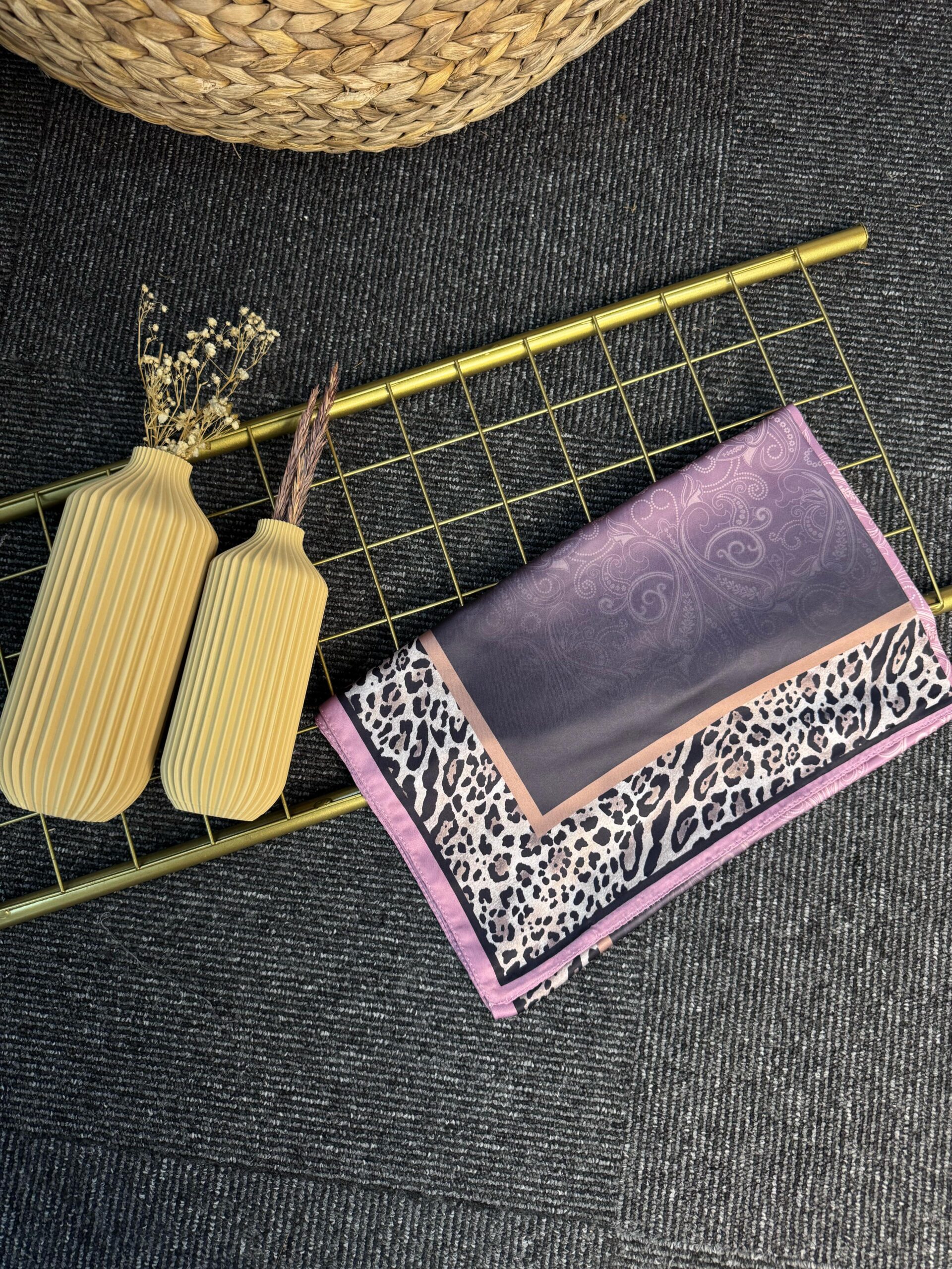 Leopar Detaylı Pamuk İpek Şal-456654-Lila