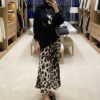• Etek: Vücuda zarifçe oturan, akıcı kumaşlı, balık kesim leopar desenli etek.