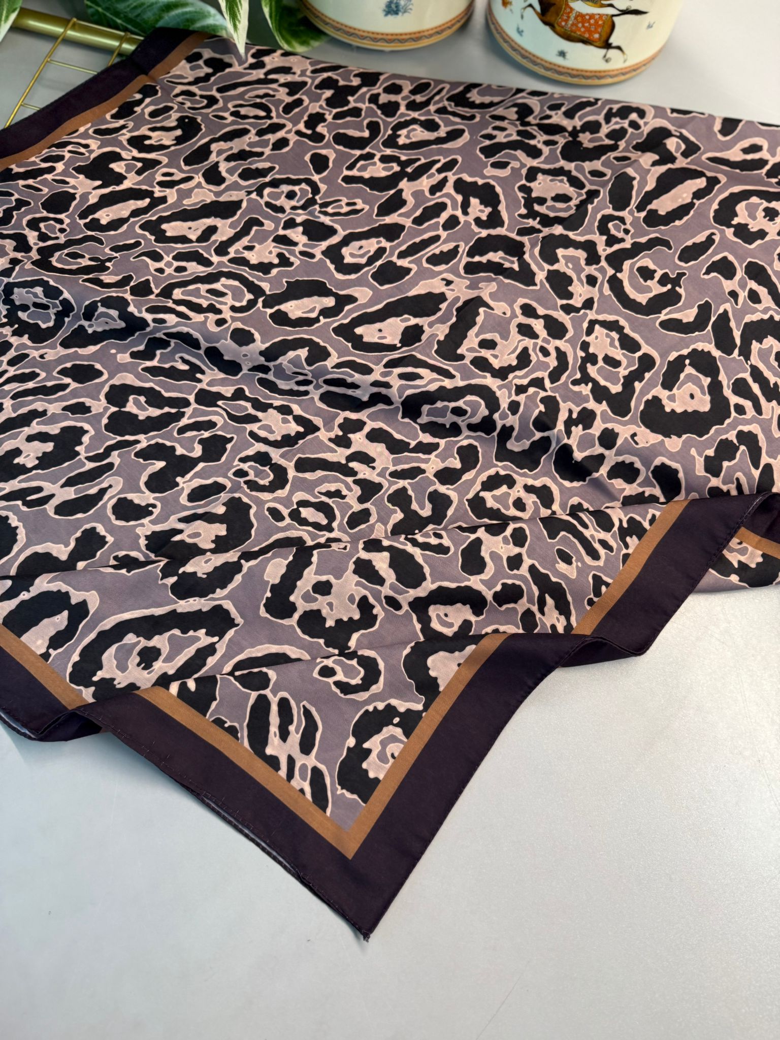 Leopare Desen Pamuk İpek Şal