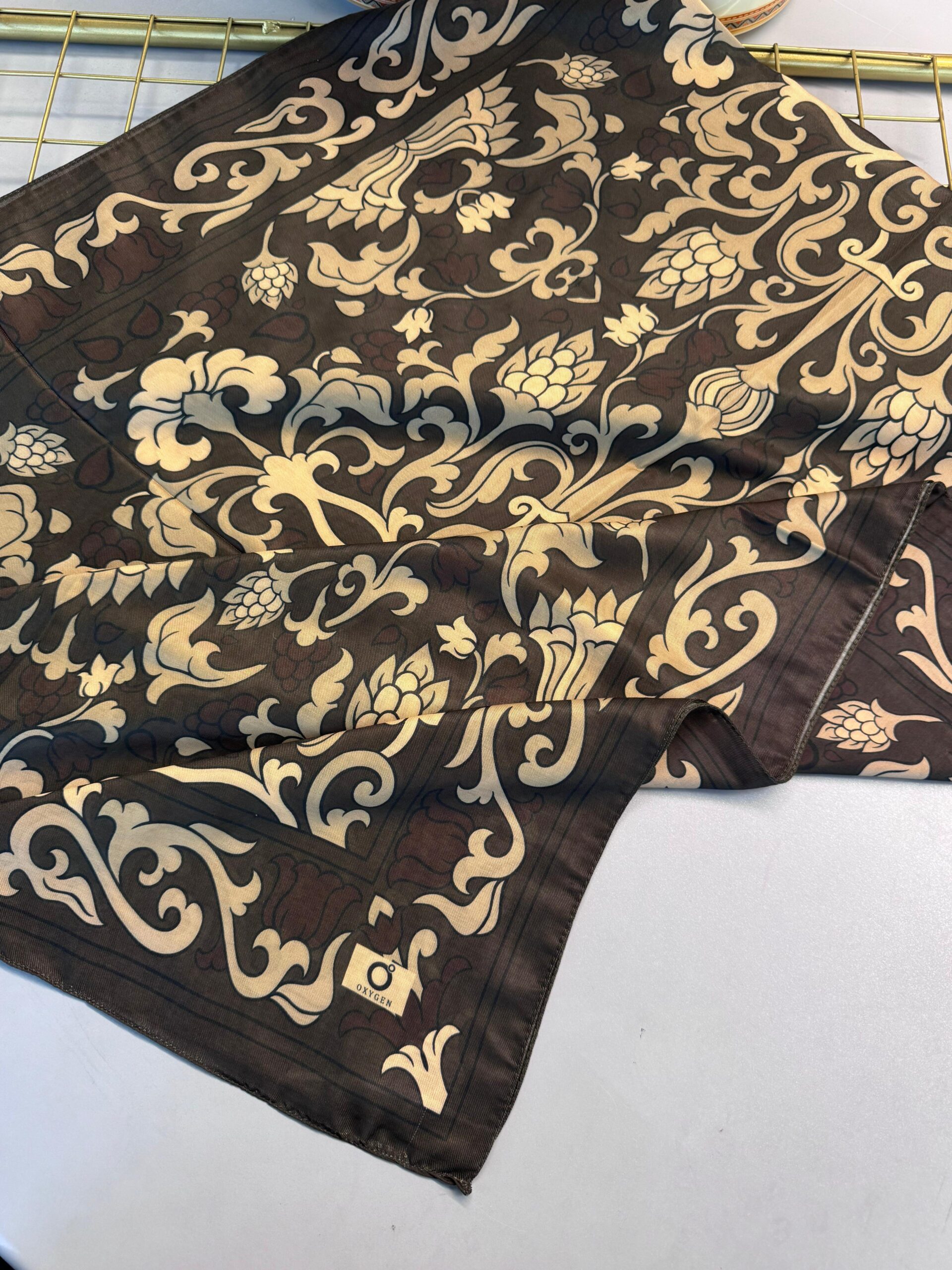 Lilyum Desen Pamuk İpek Şal-10008-Çikolata
