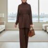 Hem günlük şıklıkta hem özel davetlerde rahatlıkla tercih edilebilecek bu takım, modern zarafeti geleneksel dokunuşlarla buluşturuyor.