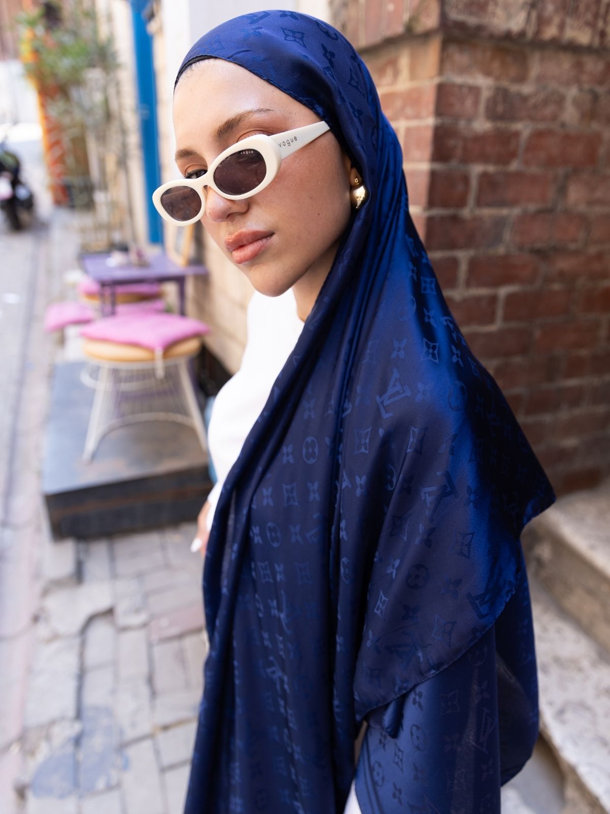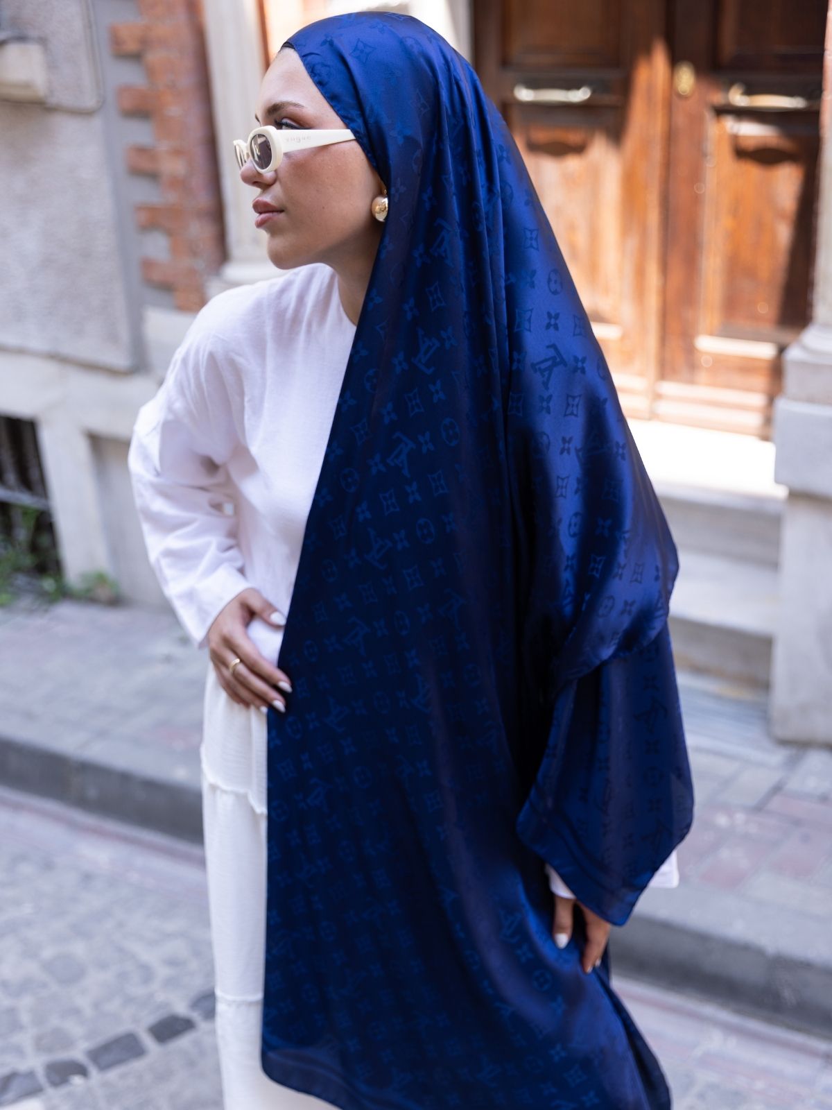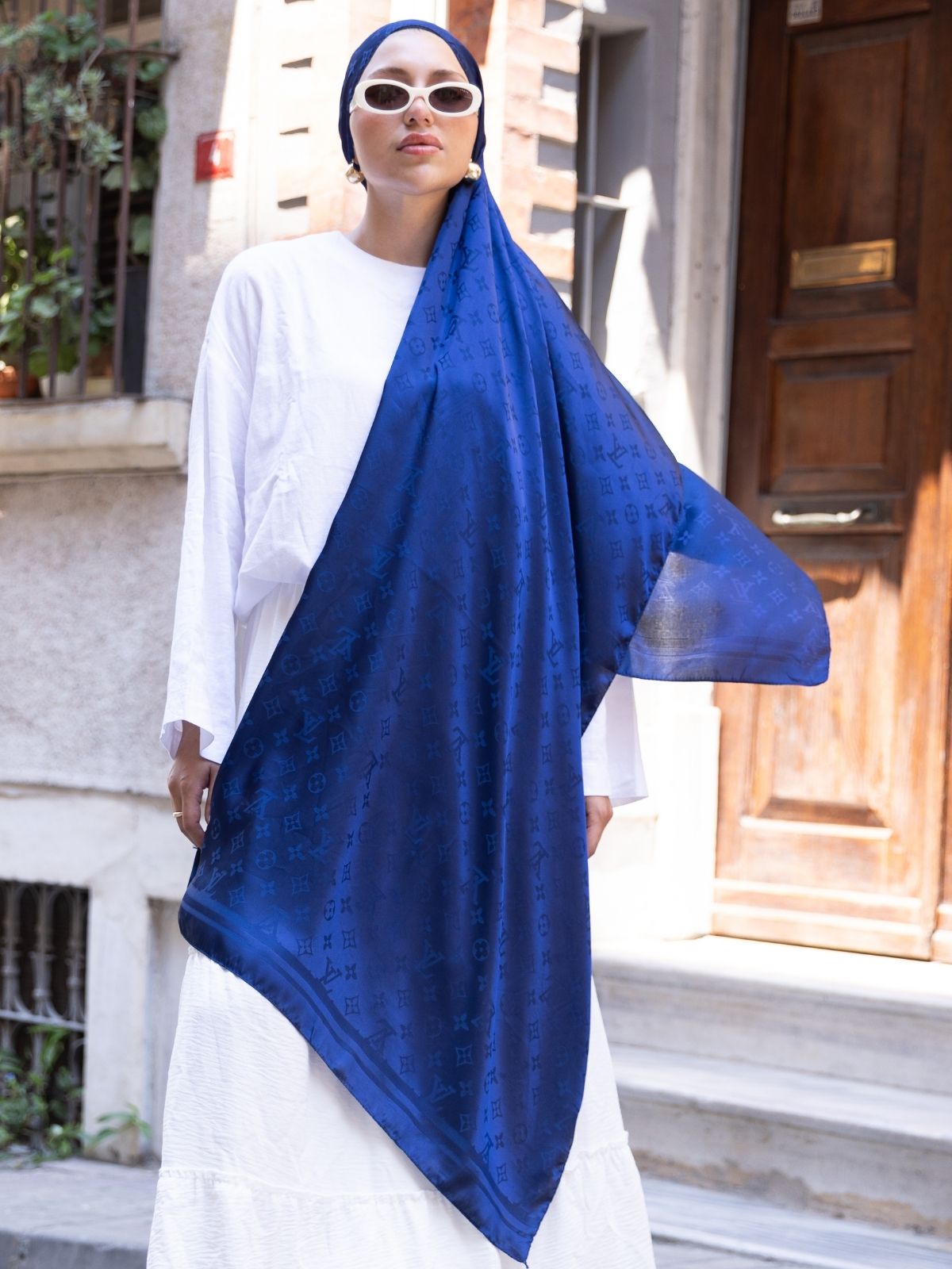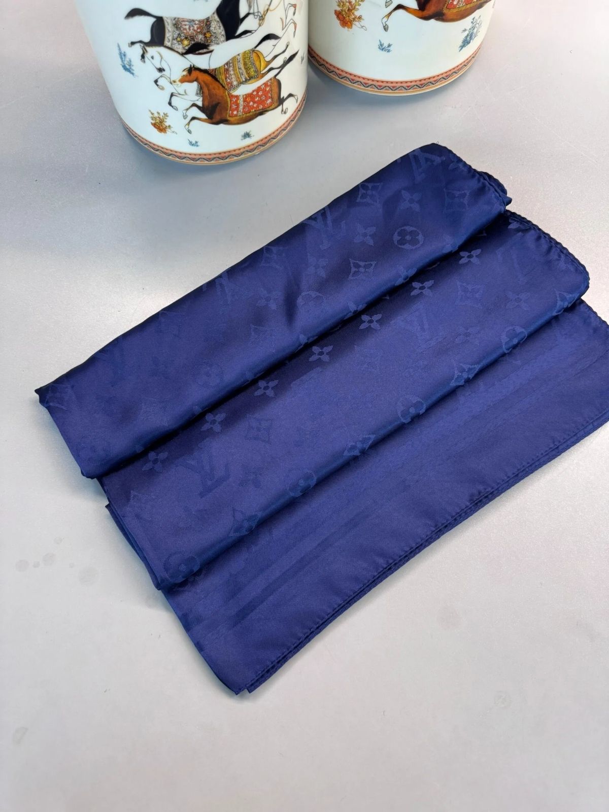 Lv Desen Pamuk İpeksi Jakar Şal-53354-Lacivert