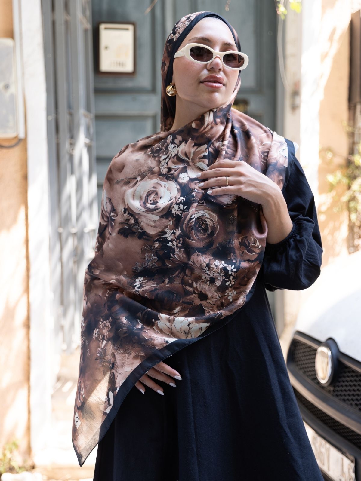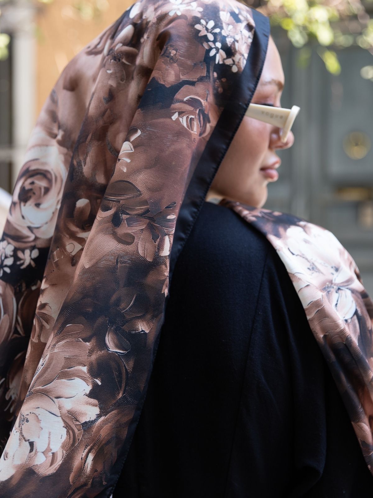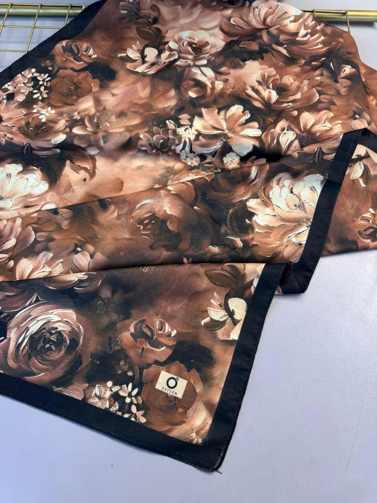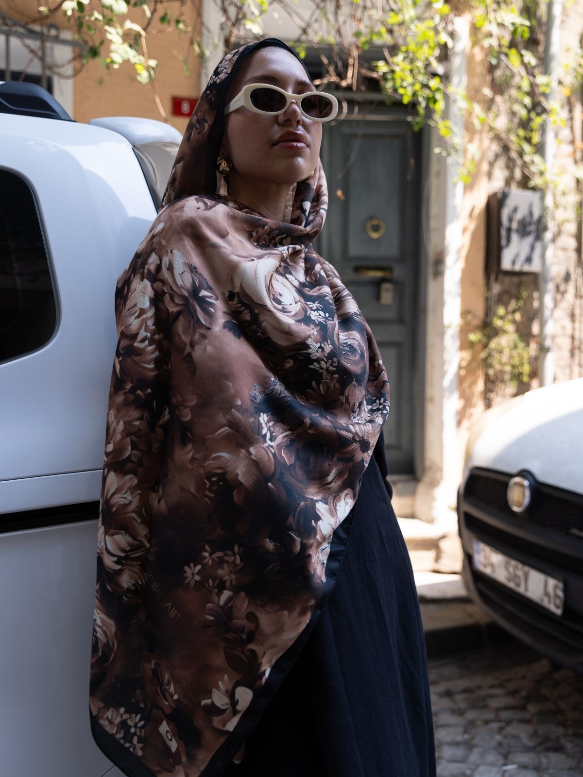 Mystic Bloom Desen Pamuk İpek Şal-Bronz